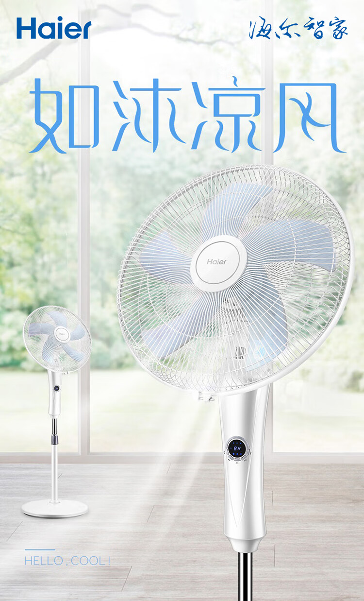 海尔(Haier)家用电风扇摇头轻风扇轻音大风落地扇节能 XLY4001A(遥控款)/XLJ4001A(机械款)