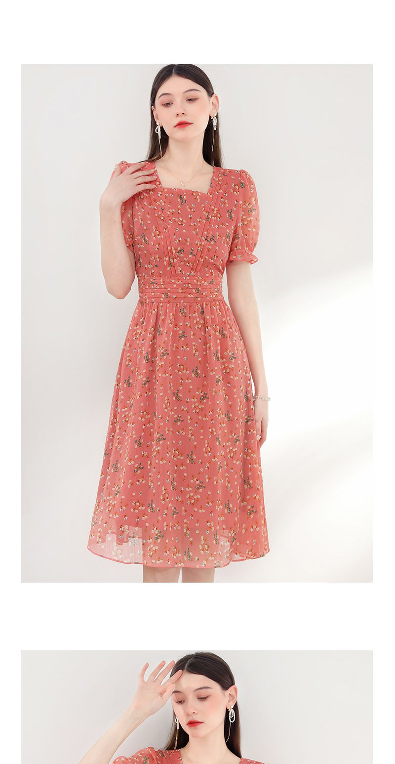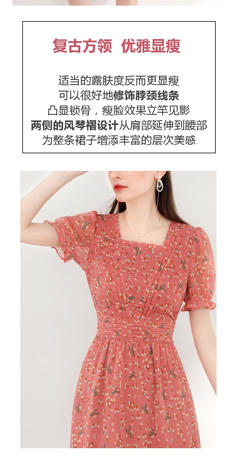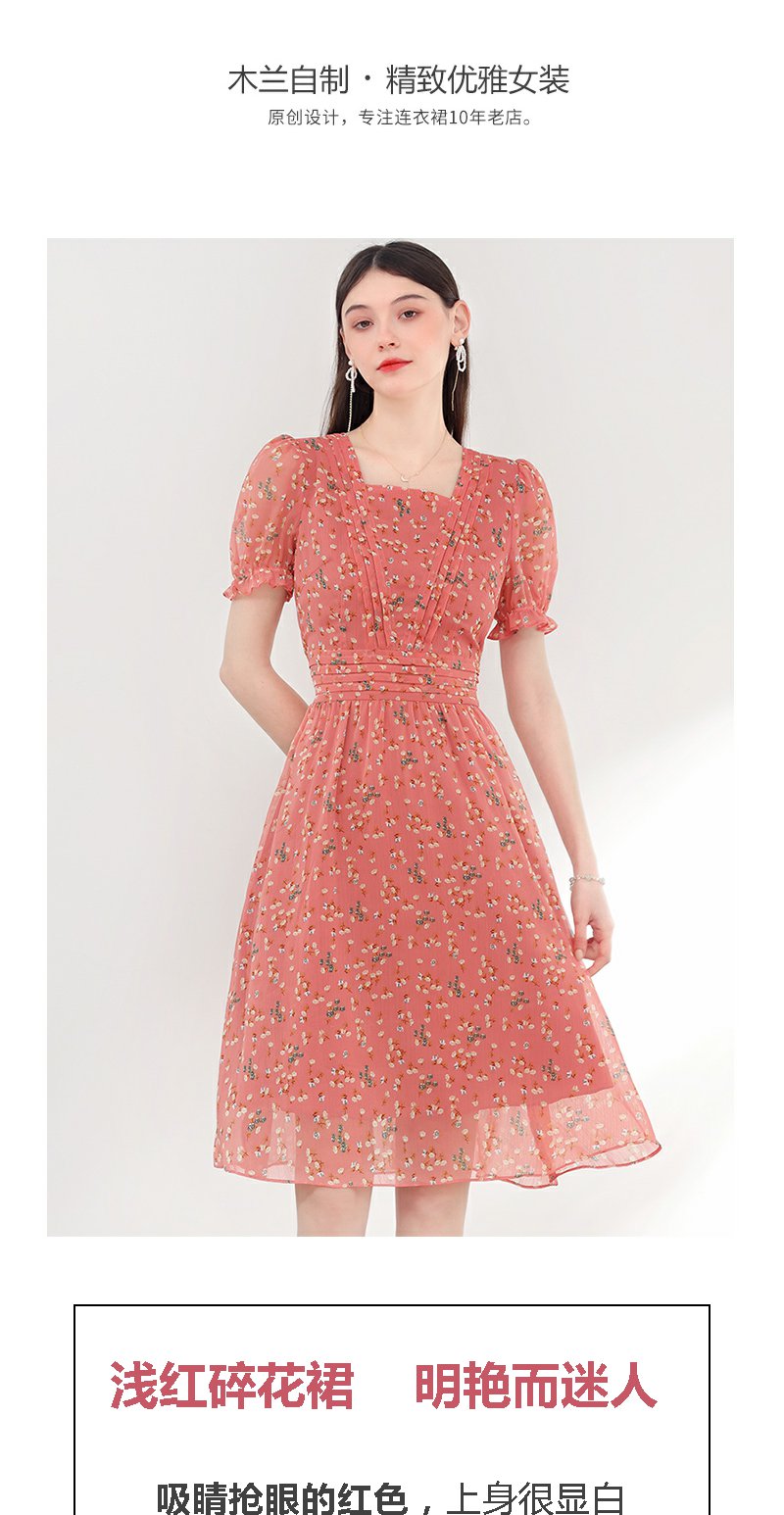 未风红色雪纺碎花连衣裙女夏2024年夏季新款女装气质法式收腰裙子