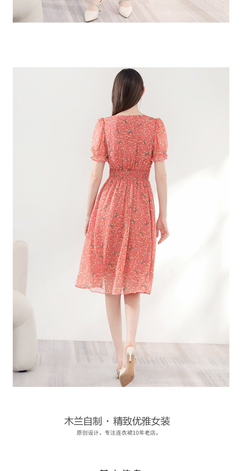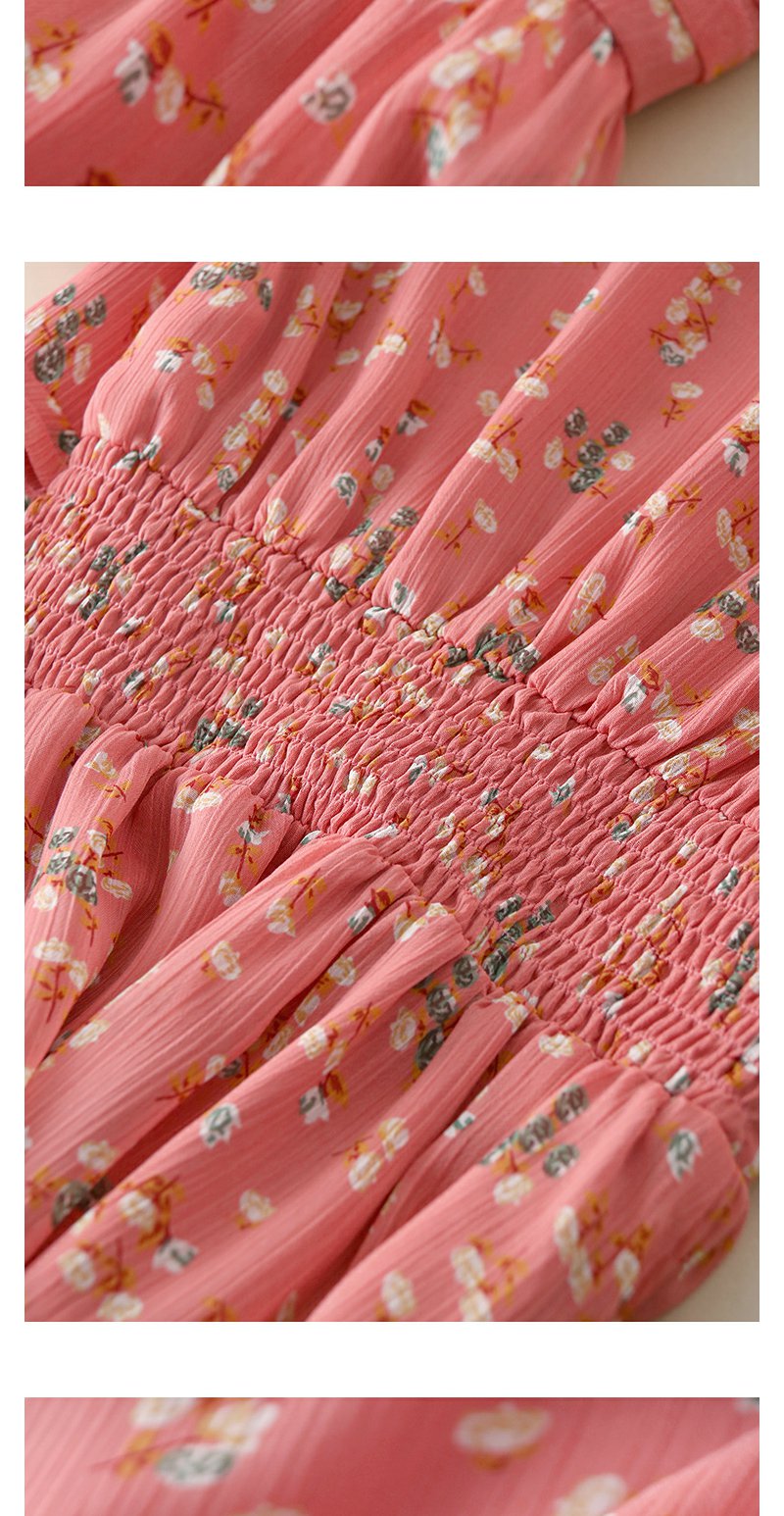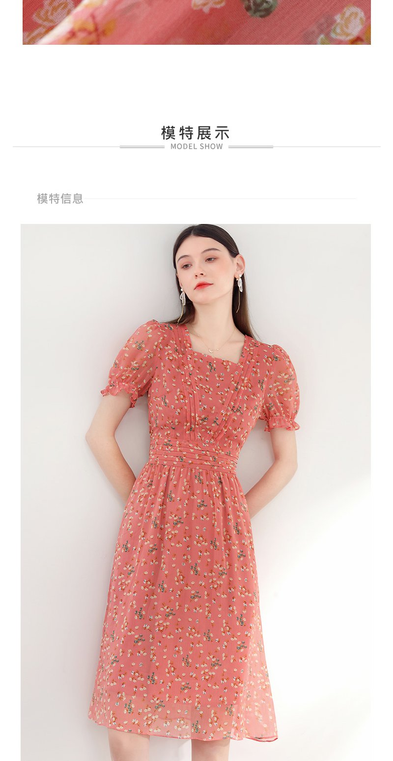 未风红色雪纺碎花连衣裙女夏2024年夏季新款女装气质法式收腰裙子