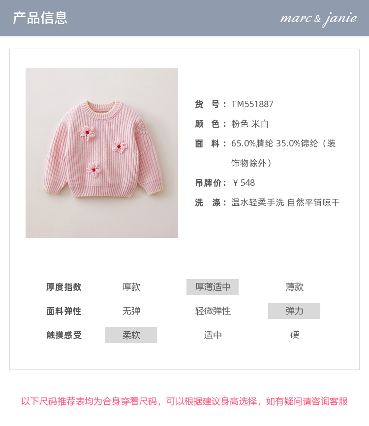 马克珍妮女童清新山茶花软糯针织毛衣2025年秋冬新款551887