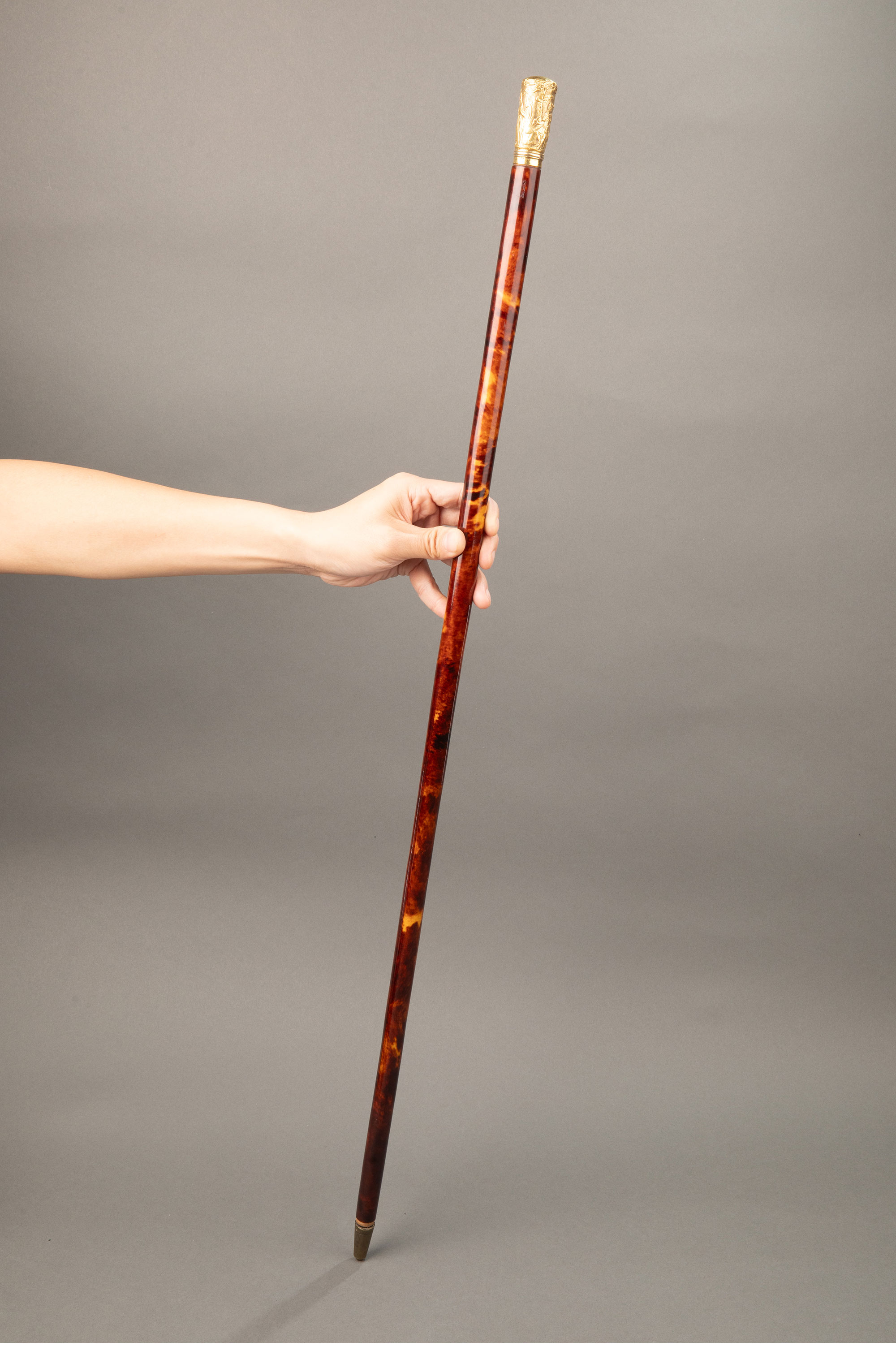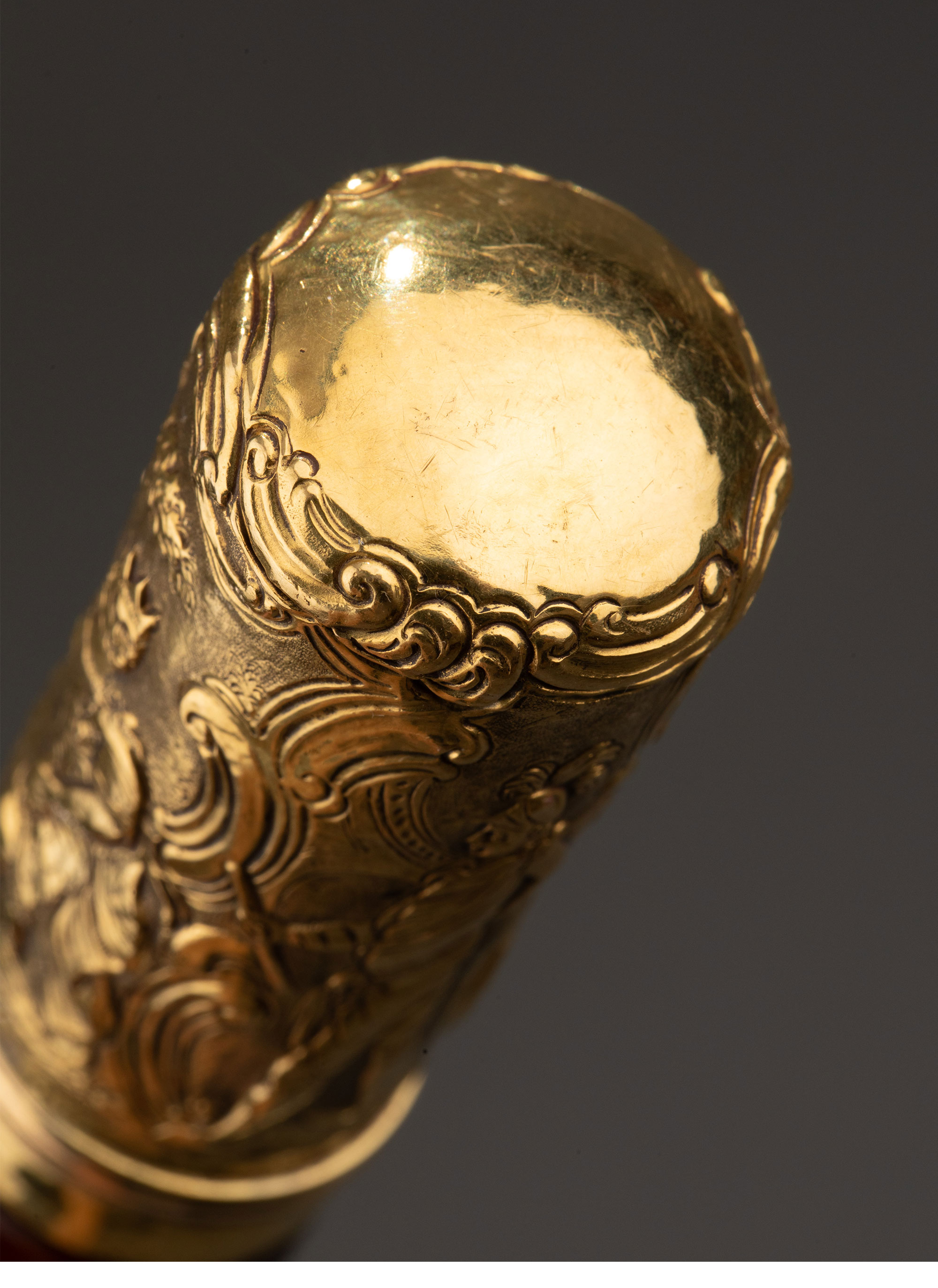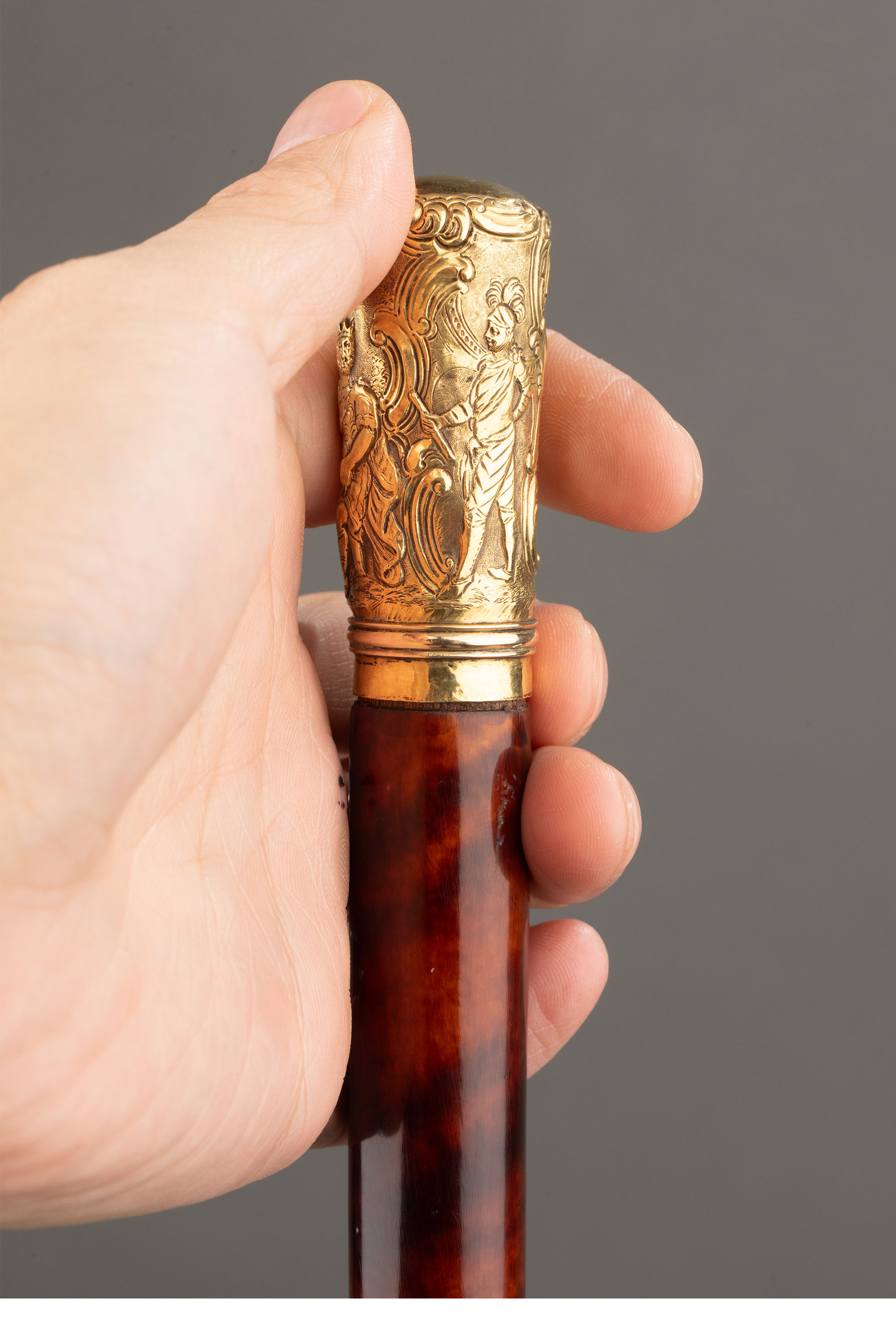 1880-1910年代英国维多利亚时代出品黄金精雕古典人物镶嵌珍稀材质杖柄绅士手杖