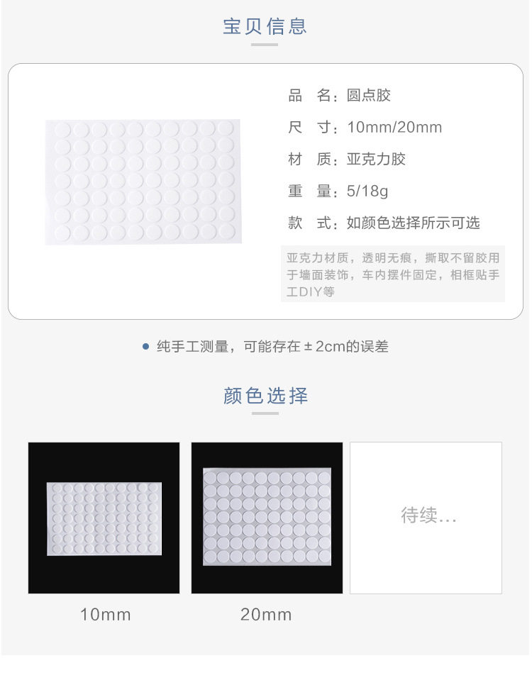 家用双面胶贴墙粘胶物体粒贴片超强无痕黏性固定贴办公透明贴圆贴