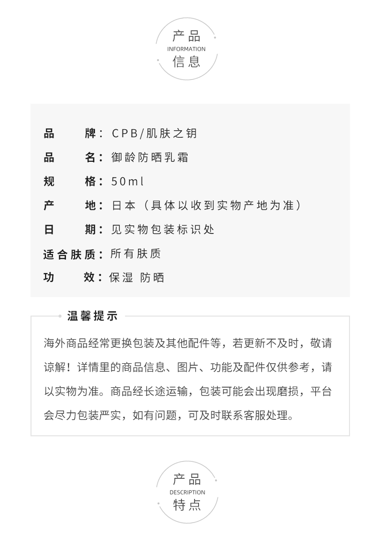 CPB肌肤之钥防晒霜50ml御龄养肤防晒乳SPF50+防护乳UV防紫外线保湿【CDF】