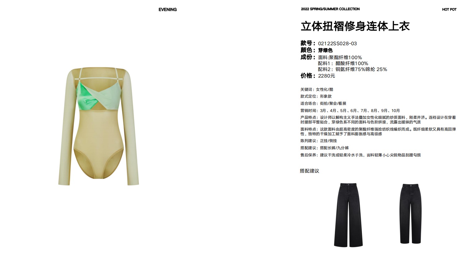立体褶皱修身连体上衣——EVENING2022春夏 新品上市
