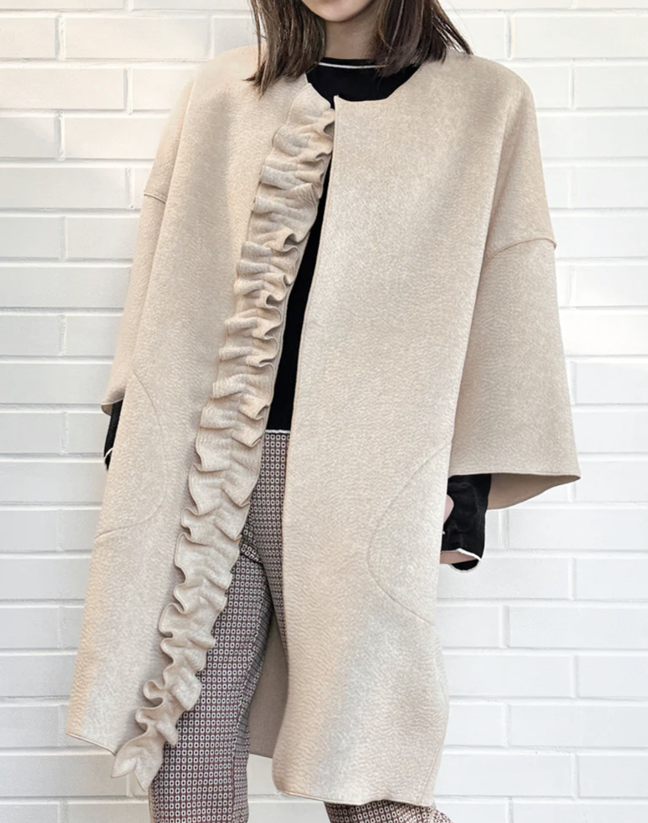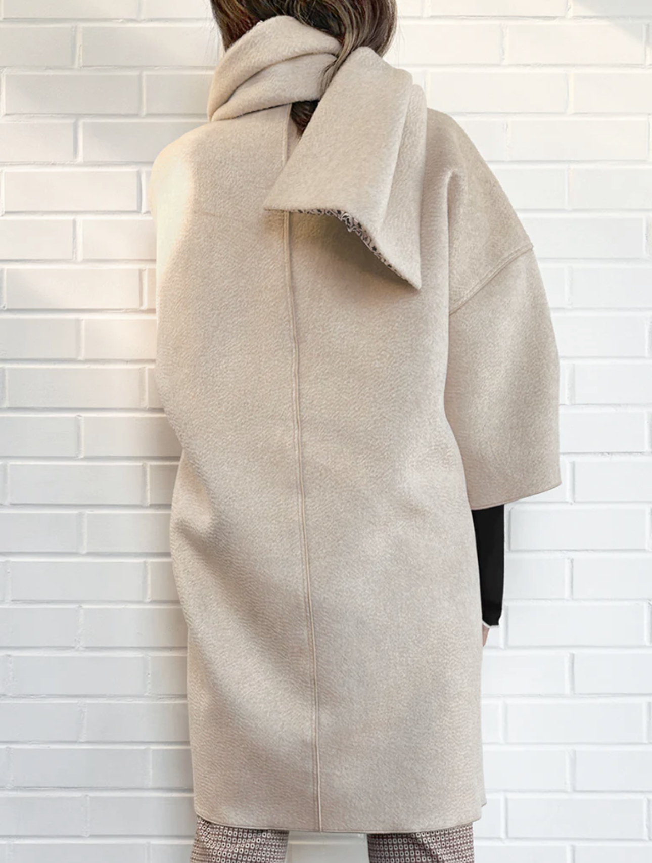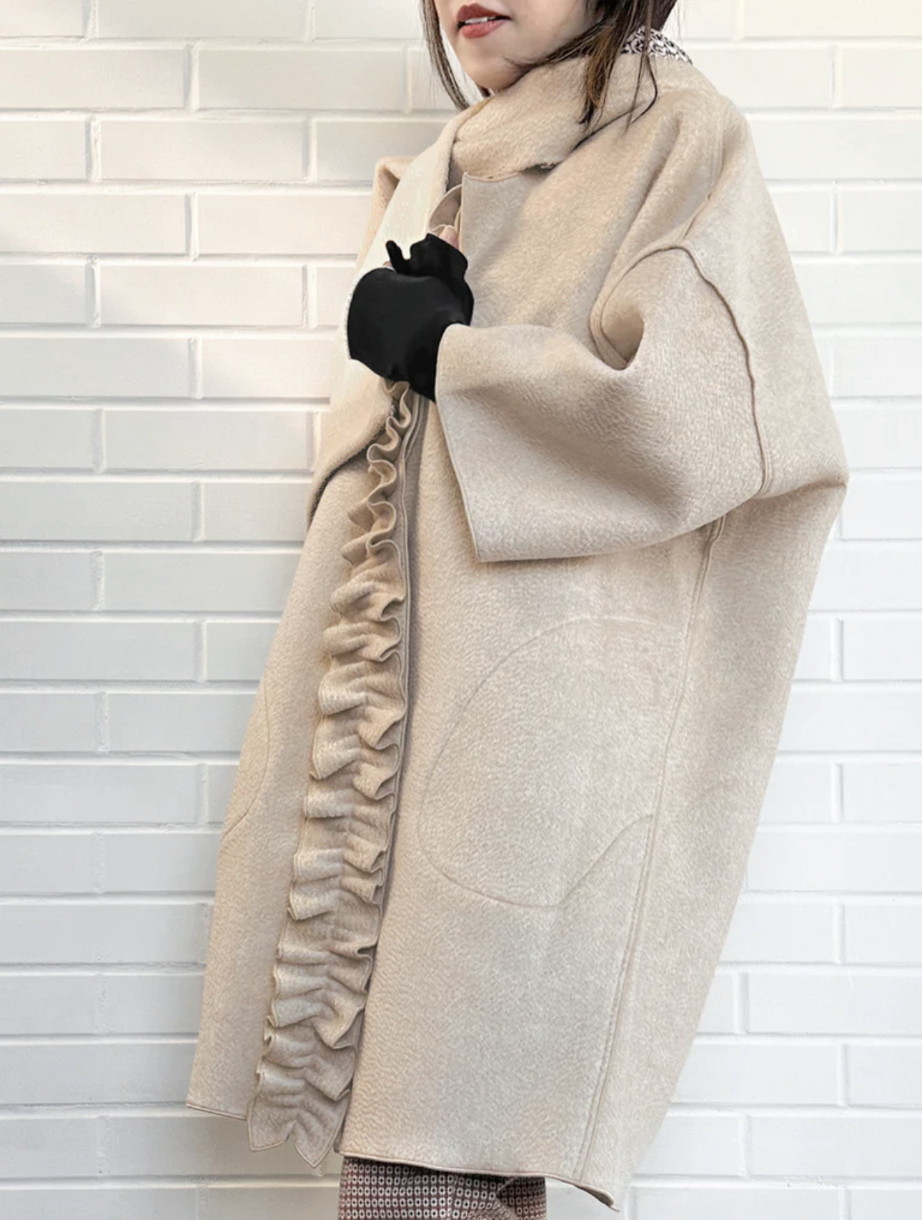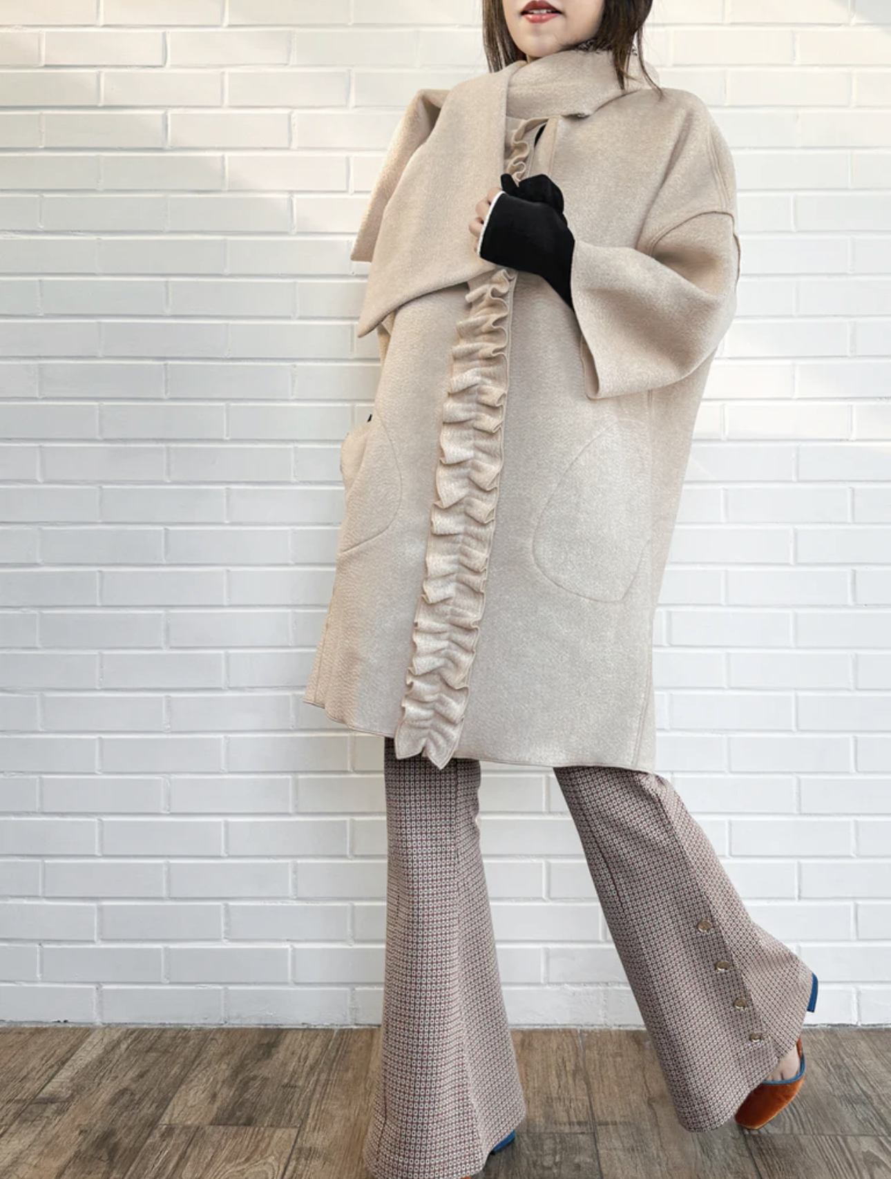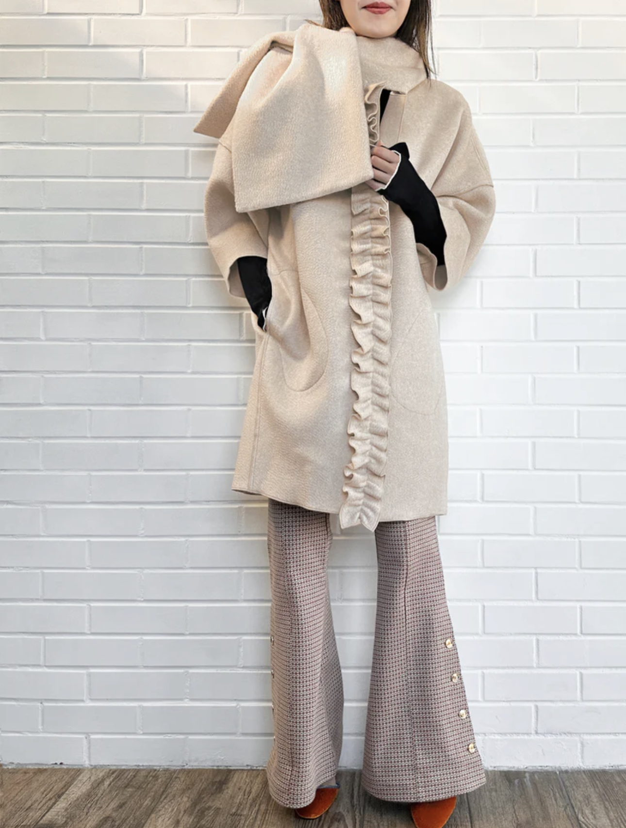 TYNVIE 连围巾木耳边廓形大衣- 杏色