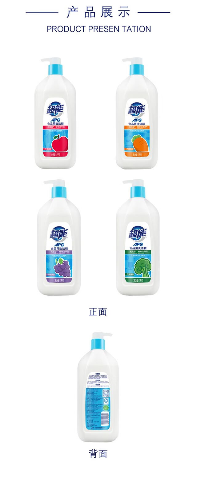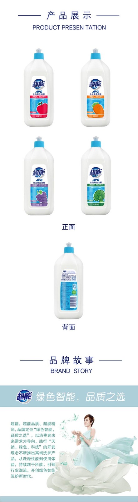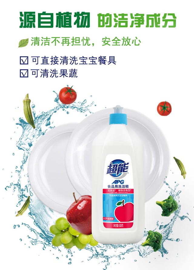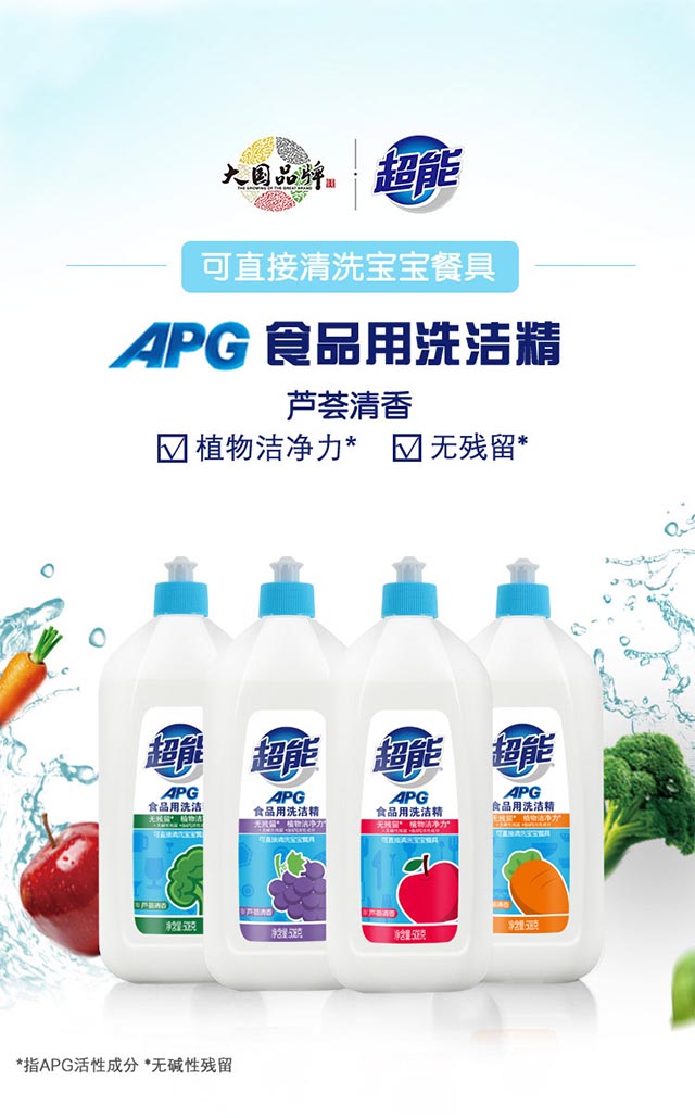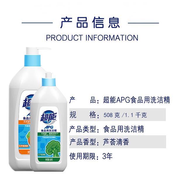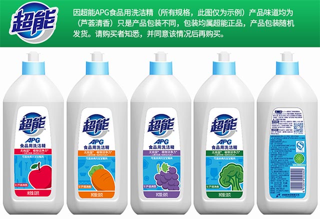 超能APG食品用洗洁精植物洁净去油去渍不伤手508g芦荟清香包装随机 508克*4瓶