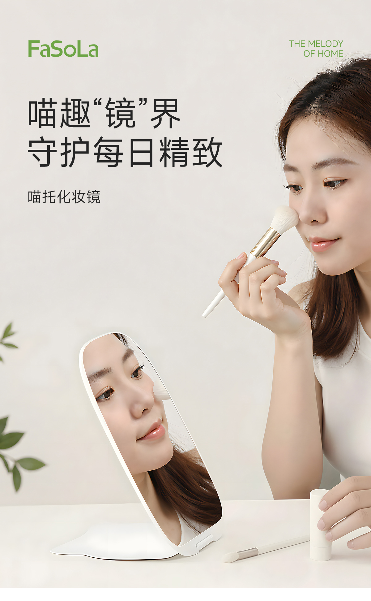 FaSoLa桌面小镜子可爱化妆镜子折叠便携学生宿舍用喵托化妆镜