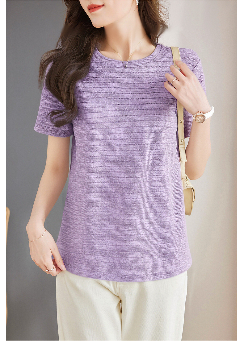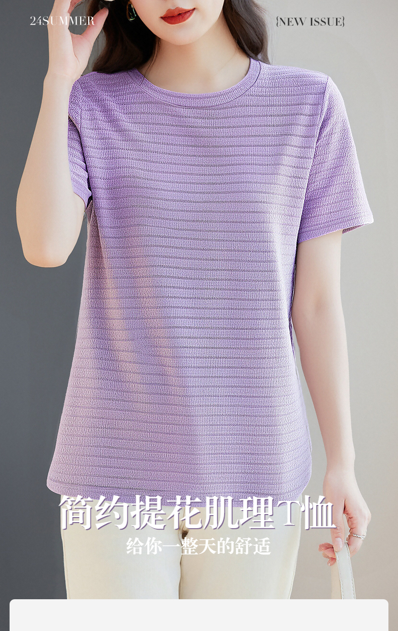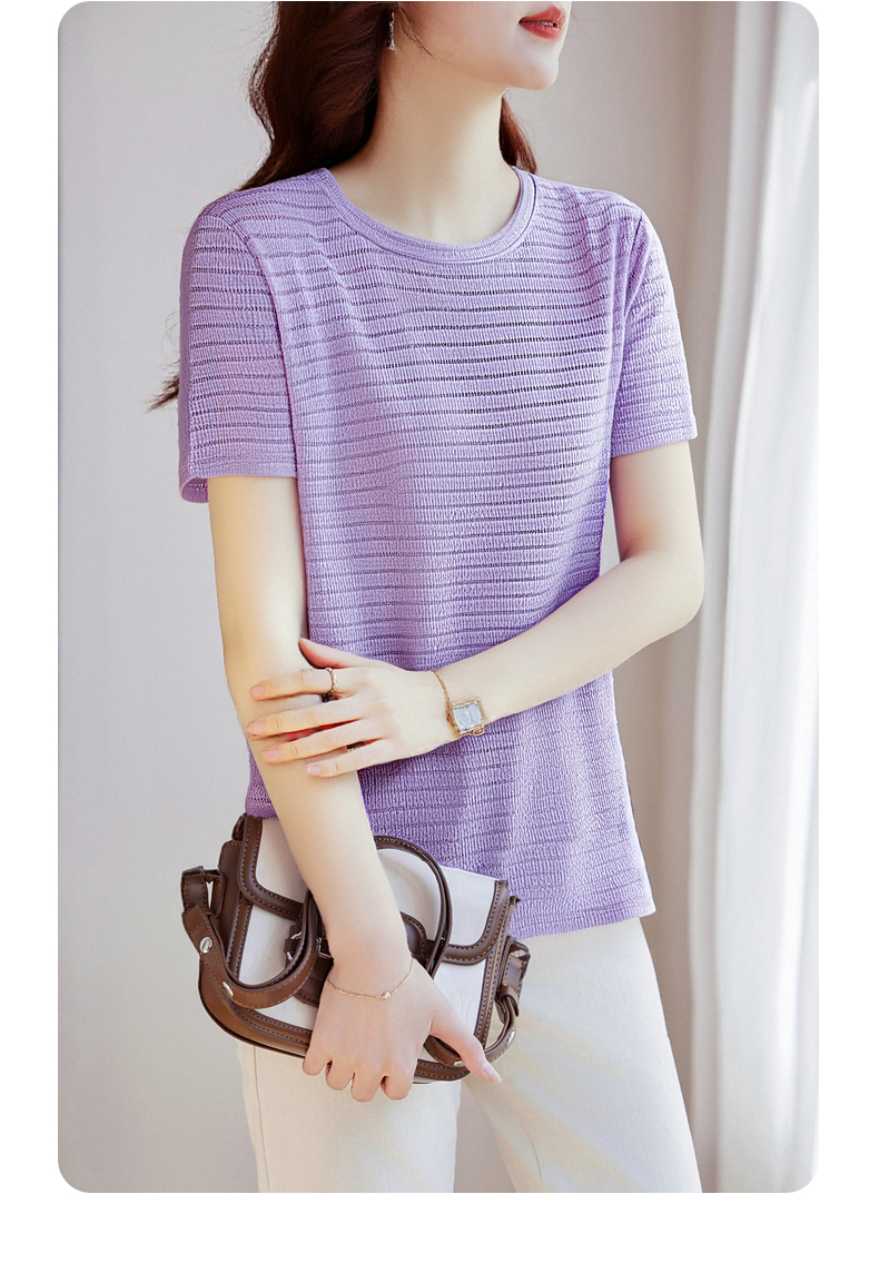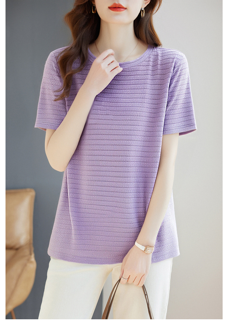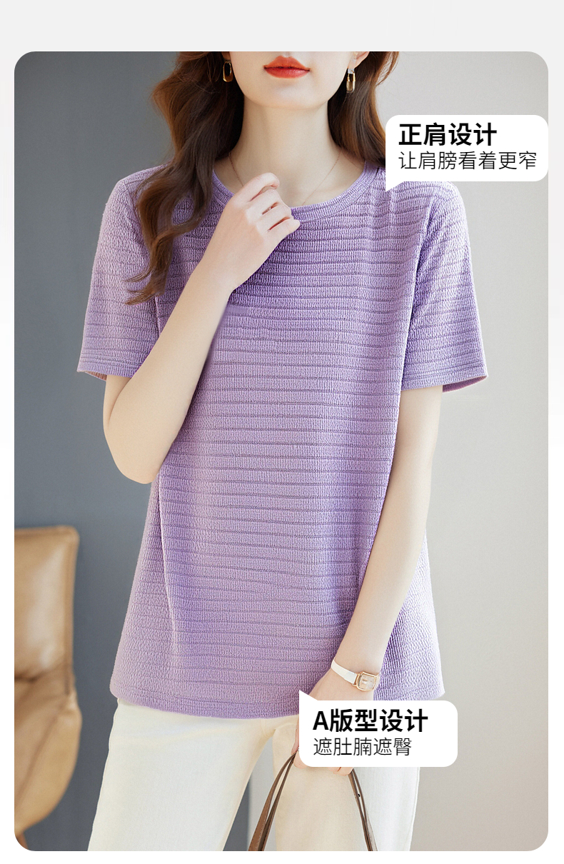 薄款冰丝针织短袖t恤女宽松大码圆领上衣夏季2025年新款女装小衫