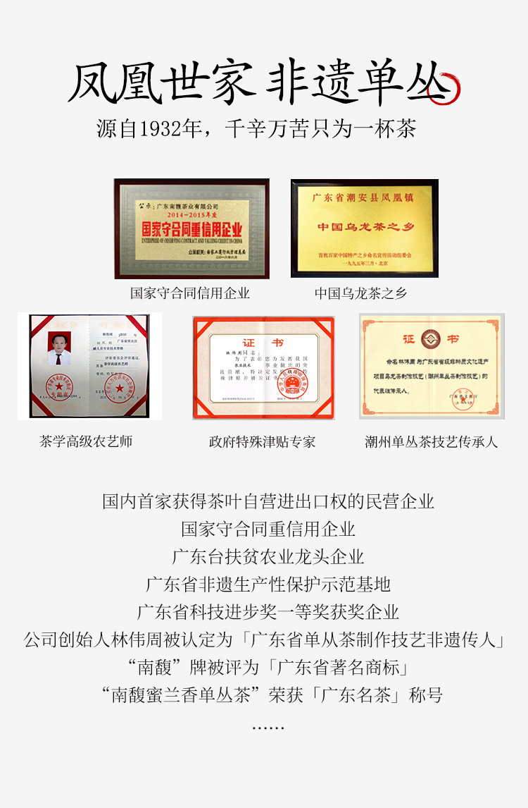南馥 凤凰单丛 蜜兰香 广东乌龙茶 100g