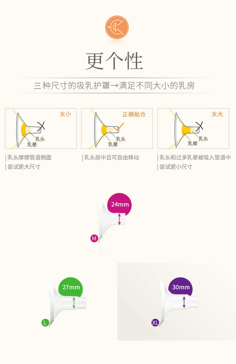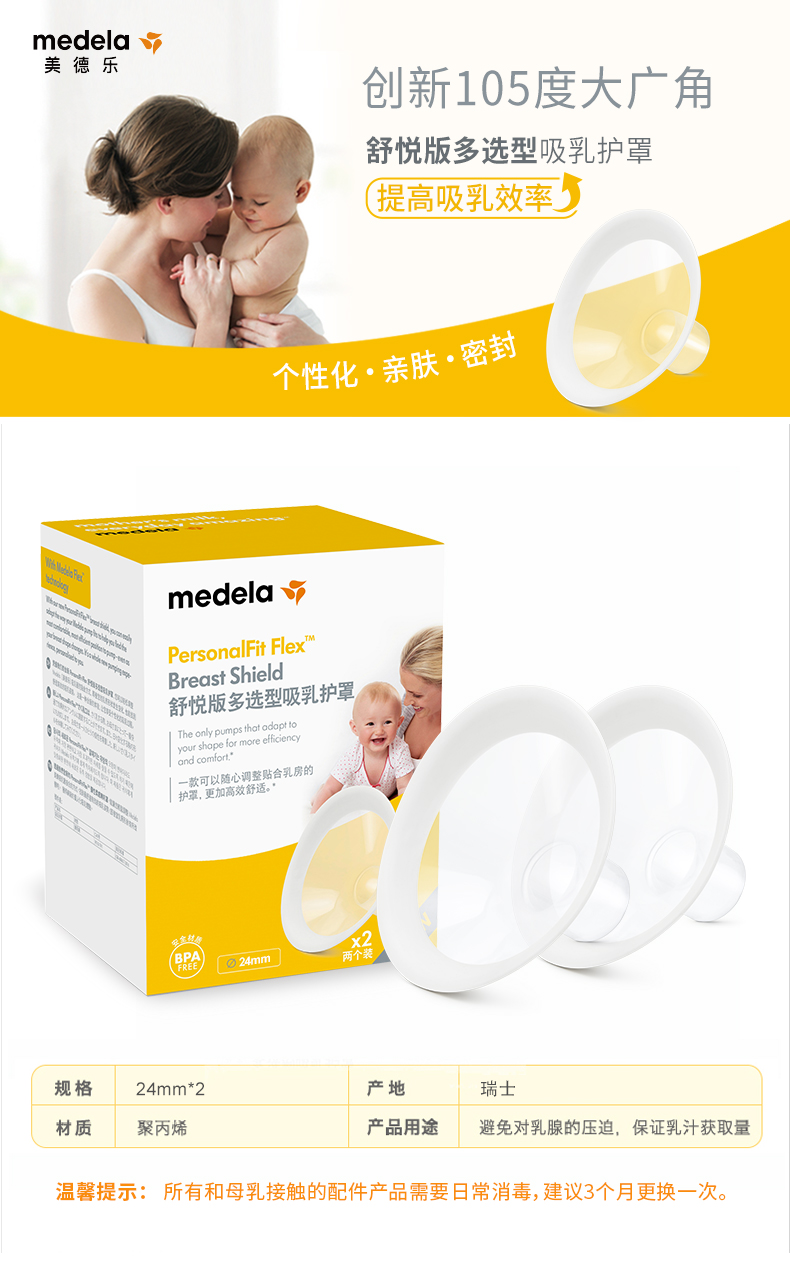 美德乐Medela舒悦版多选型吸乳护罩24/27两个装105度广角 MDL-56113/56118