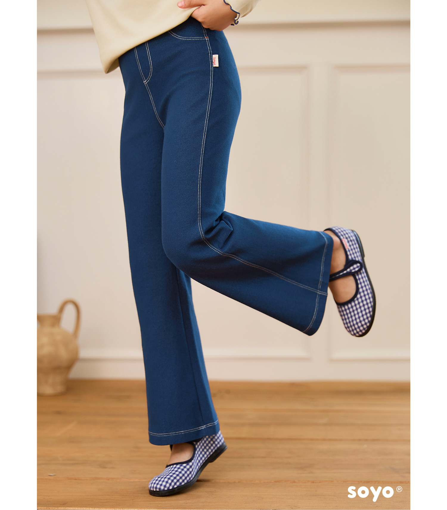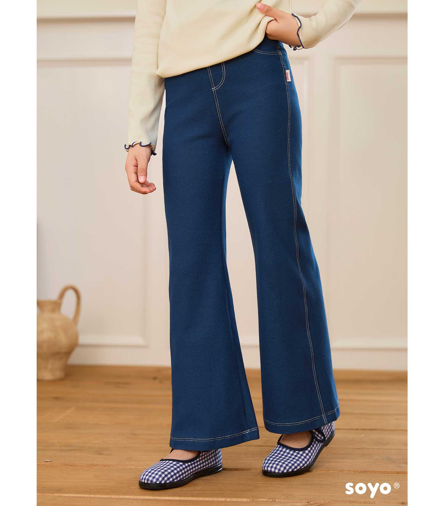 soyo舍予良仓经典实穿弹力牛仔喇叭裤