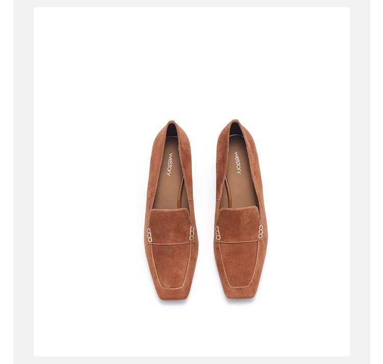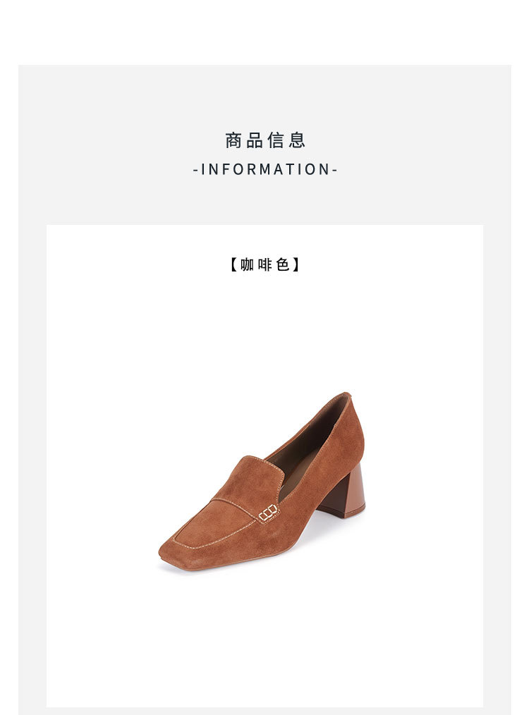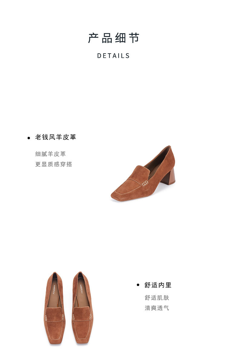 westory春季新款小方头粗跟中跟乐福鞋W24AM56801
