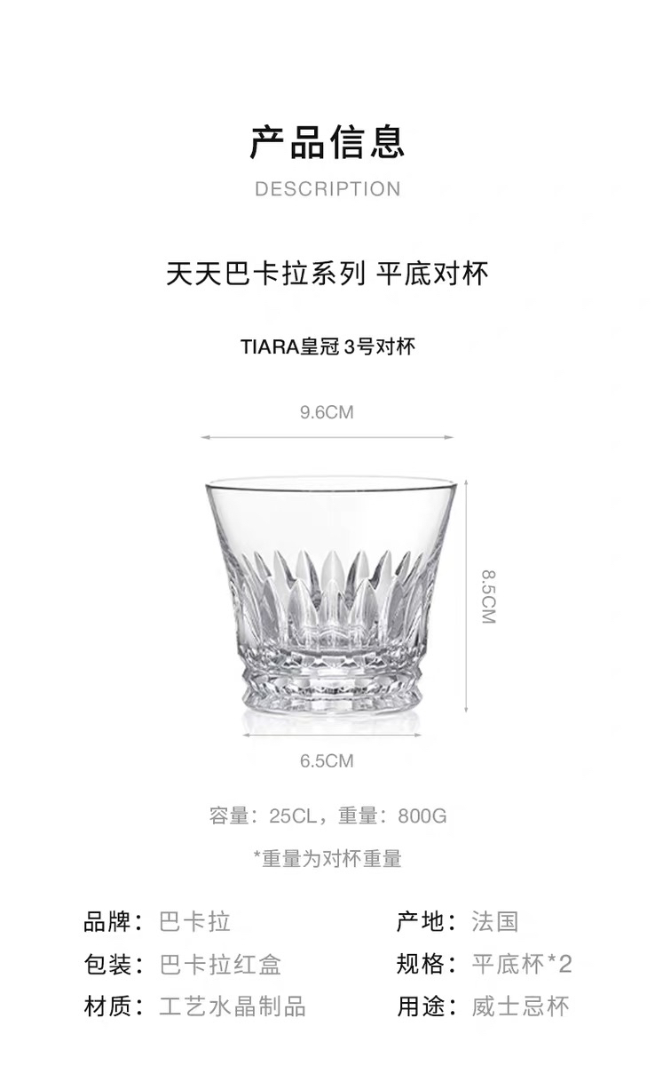 Baccarat巴卡拉 天天巴卡拉系列 皇冠 烟火之光威士忌平底对杯