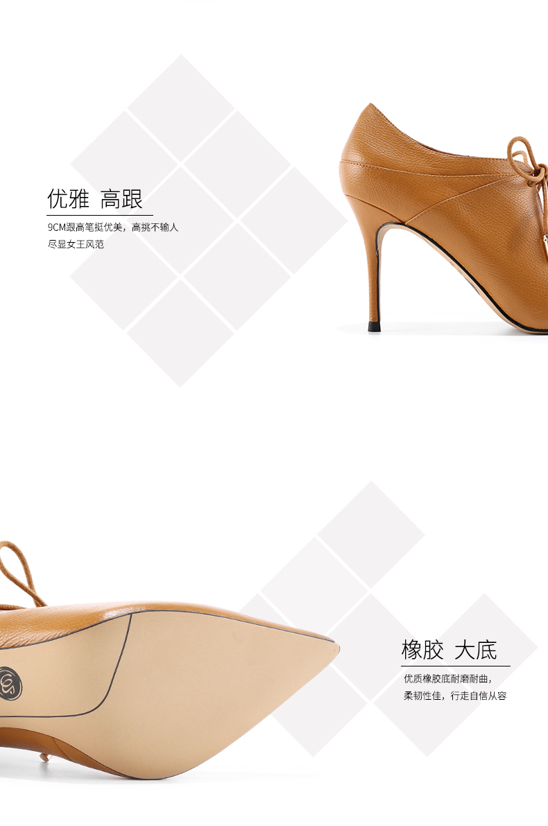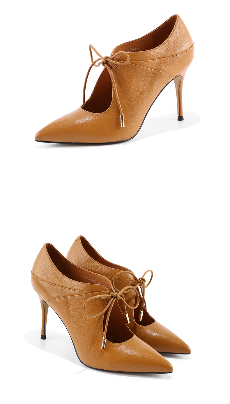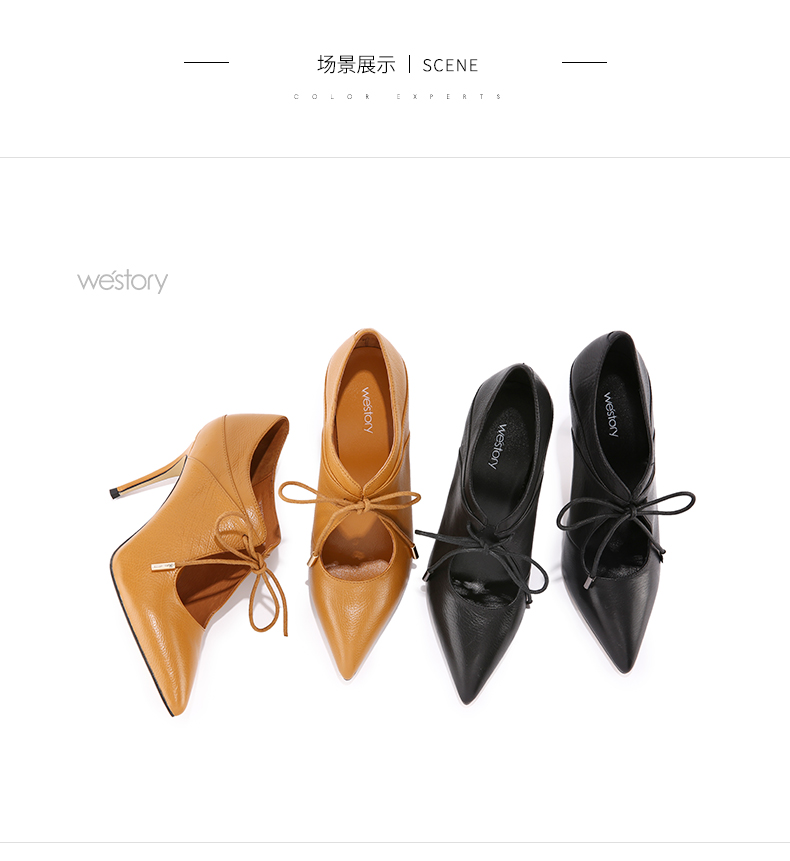 westory 秋季新款女单鞋细跟真皮单鞋高跟鞋系带高跟鞋W273M70251