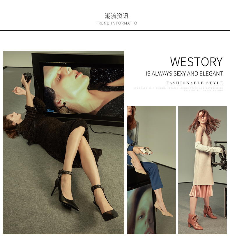 westory女鞋夏季新款尖头高跟牛皮后空鞋羊皮内里牛皮鞋垫72961