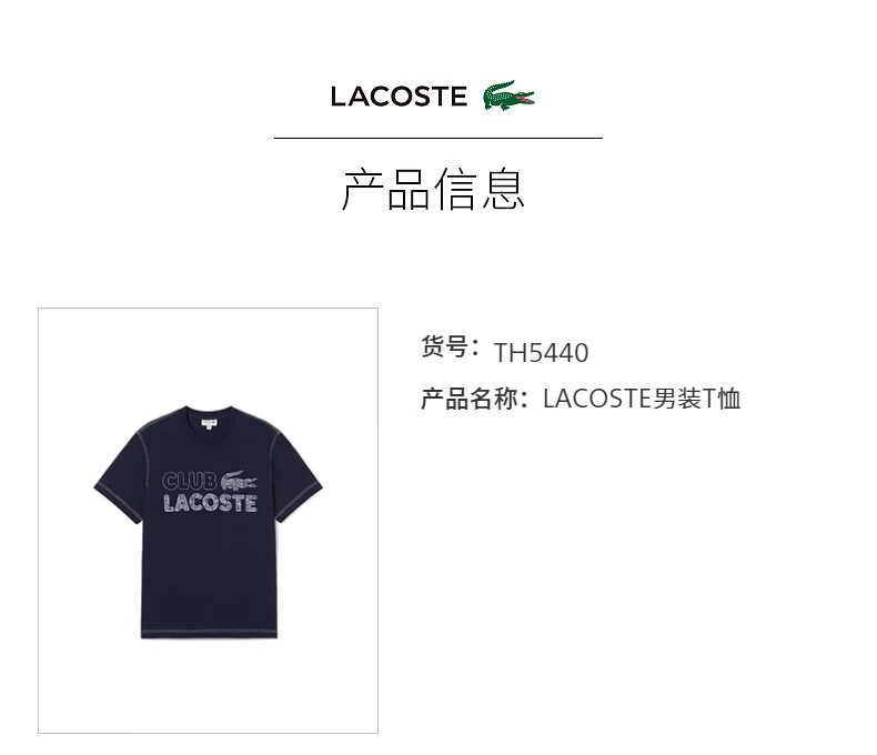 【海南专供价】Lacoste春夏短袖T恤TH5440-98