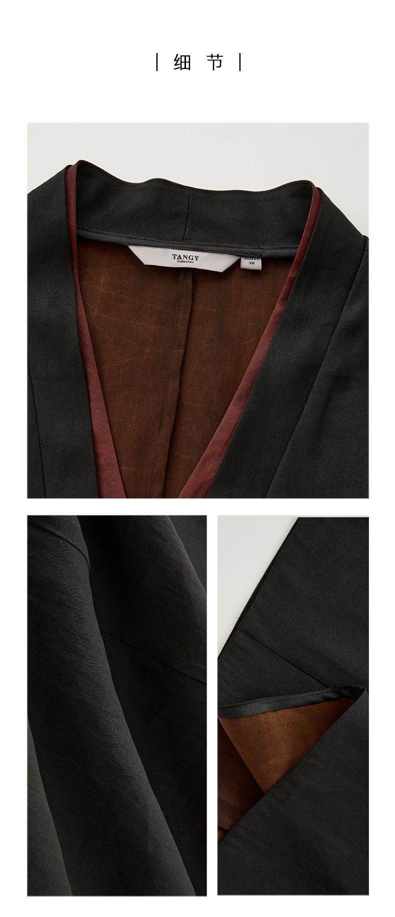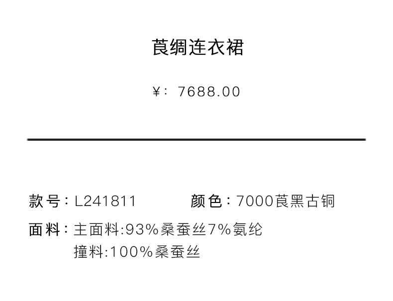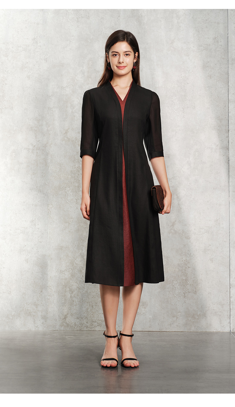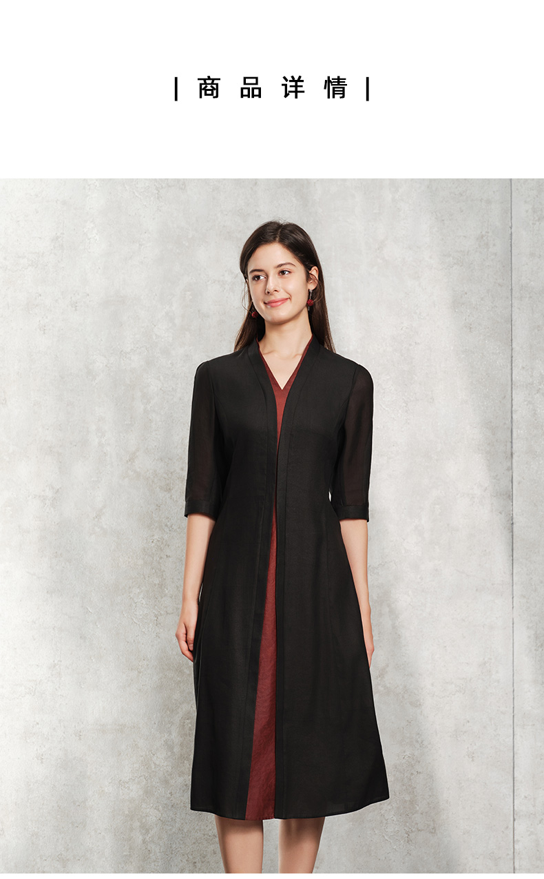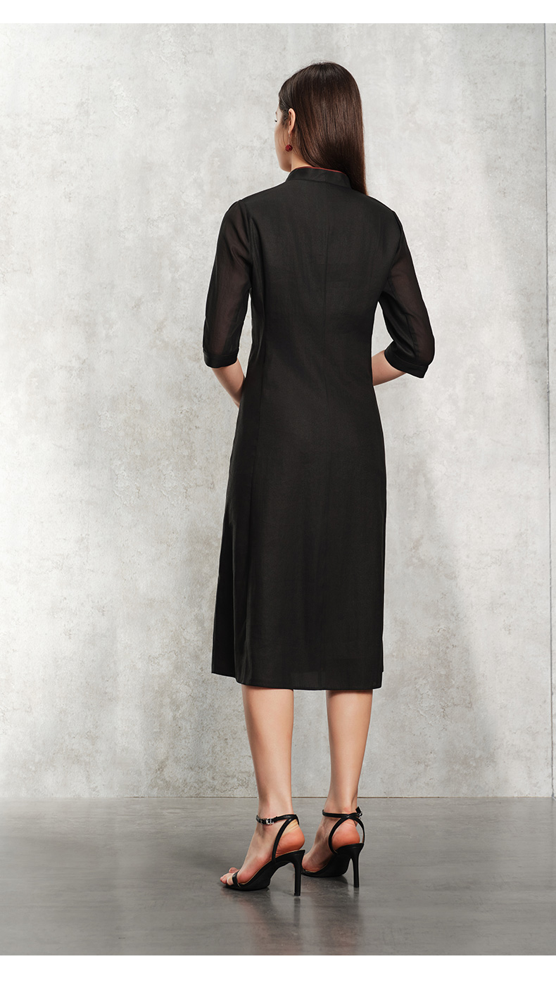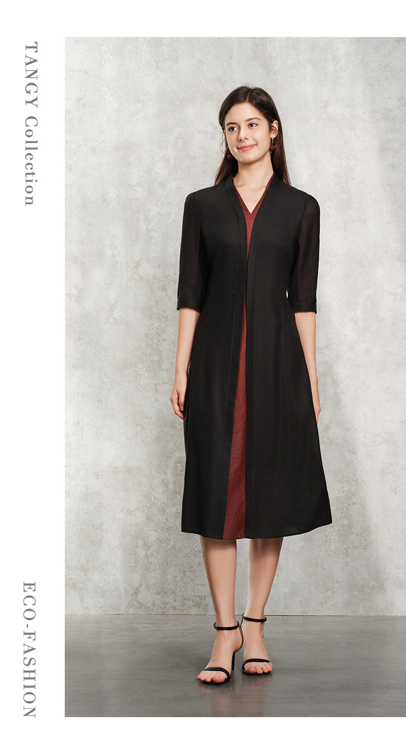 TANGY Collection天意精品2024春季新品莨绸香云纱修身七分袖中长款连衣裙 L241811