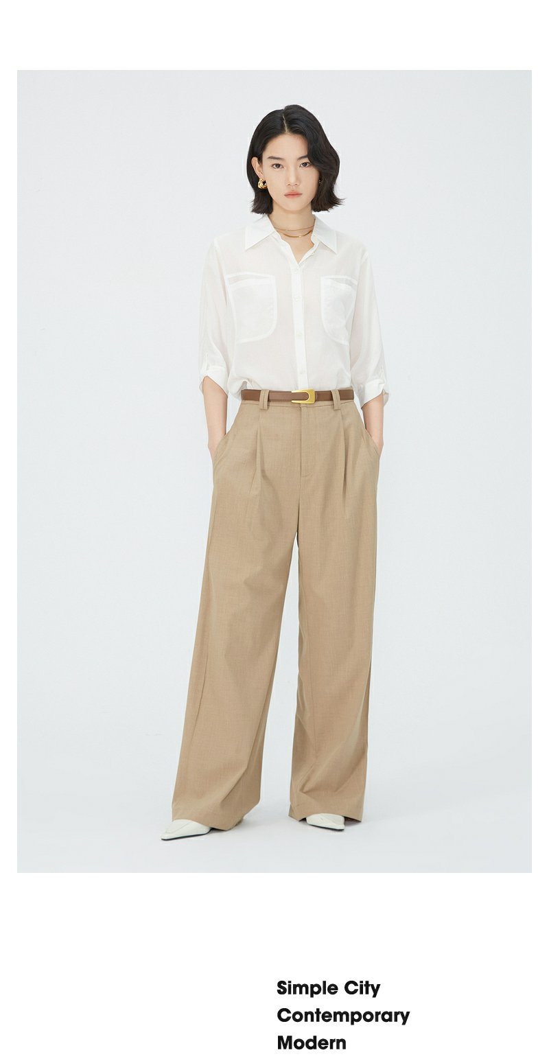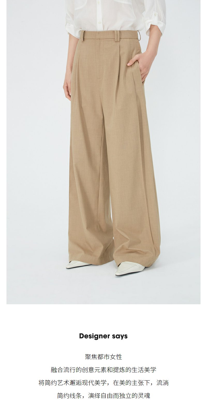 NEELLY纳俪商场同款高腰显瘦休闲裤女夏季通勤宽松时尚拖地西裤N24051H01157