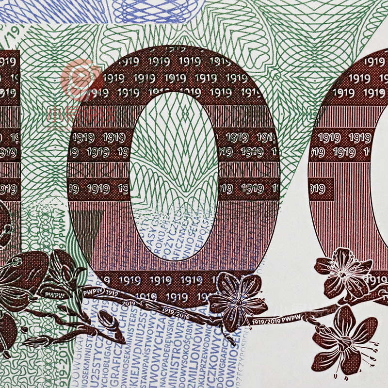 为纪念波兰安全印刷厂(简称PWPW)成立 100 周年,波兰邮政发行了这枚特别的收藏邮票。邮票尺寸为79 x 51 mm,发行量为13万枚。