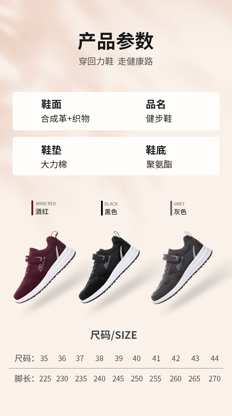 回力老人鞋女春季妈妈健步鞋透气网软底不易滑中老年爸爸运动鞋子WXY(S)-6133