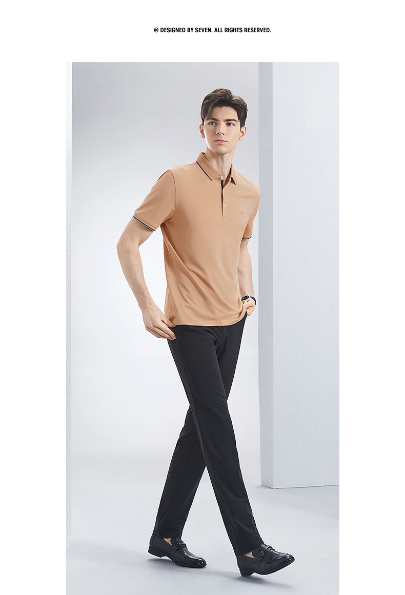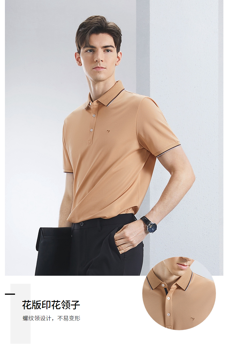 【不变形领】【不变形领】柒牌短袖polo衫男2024夏季新款商务休闲印花翻领T恤 126T70720