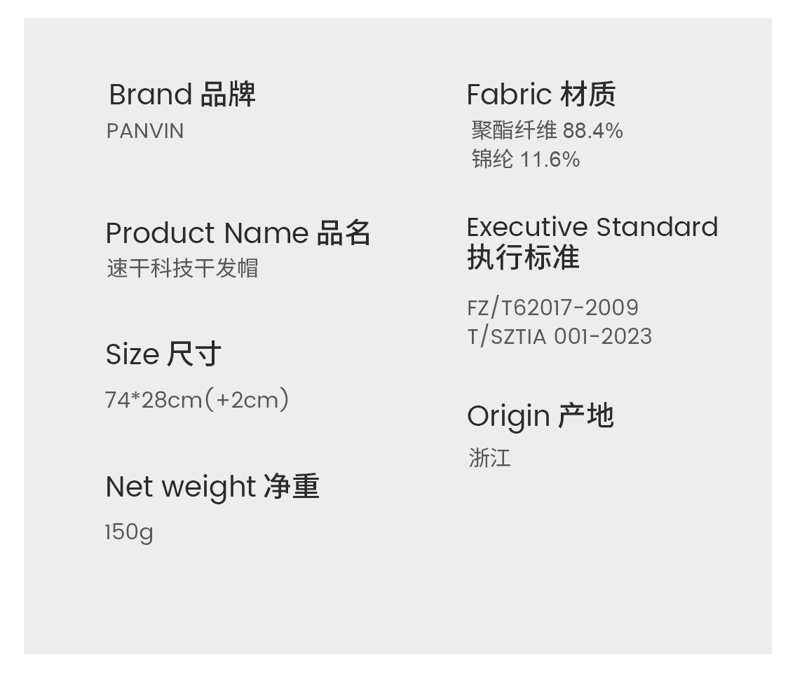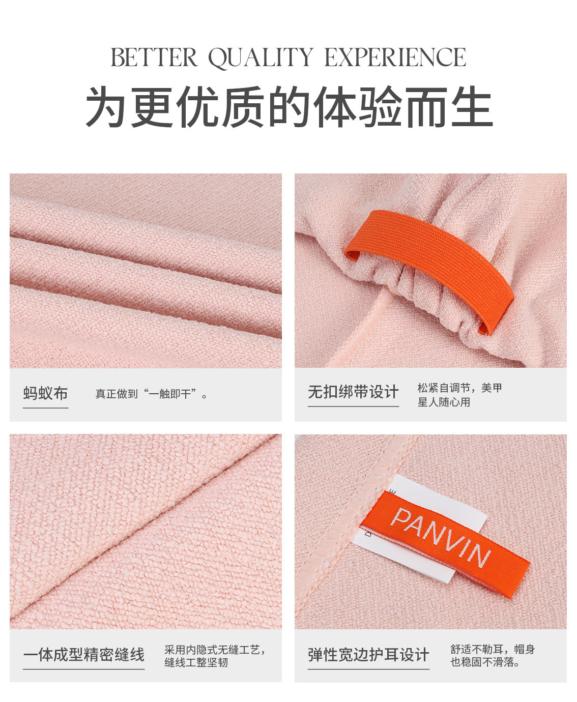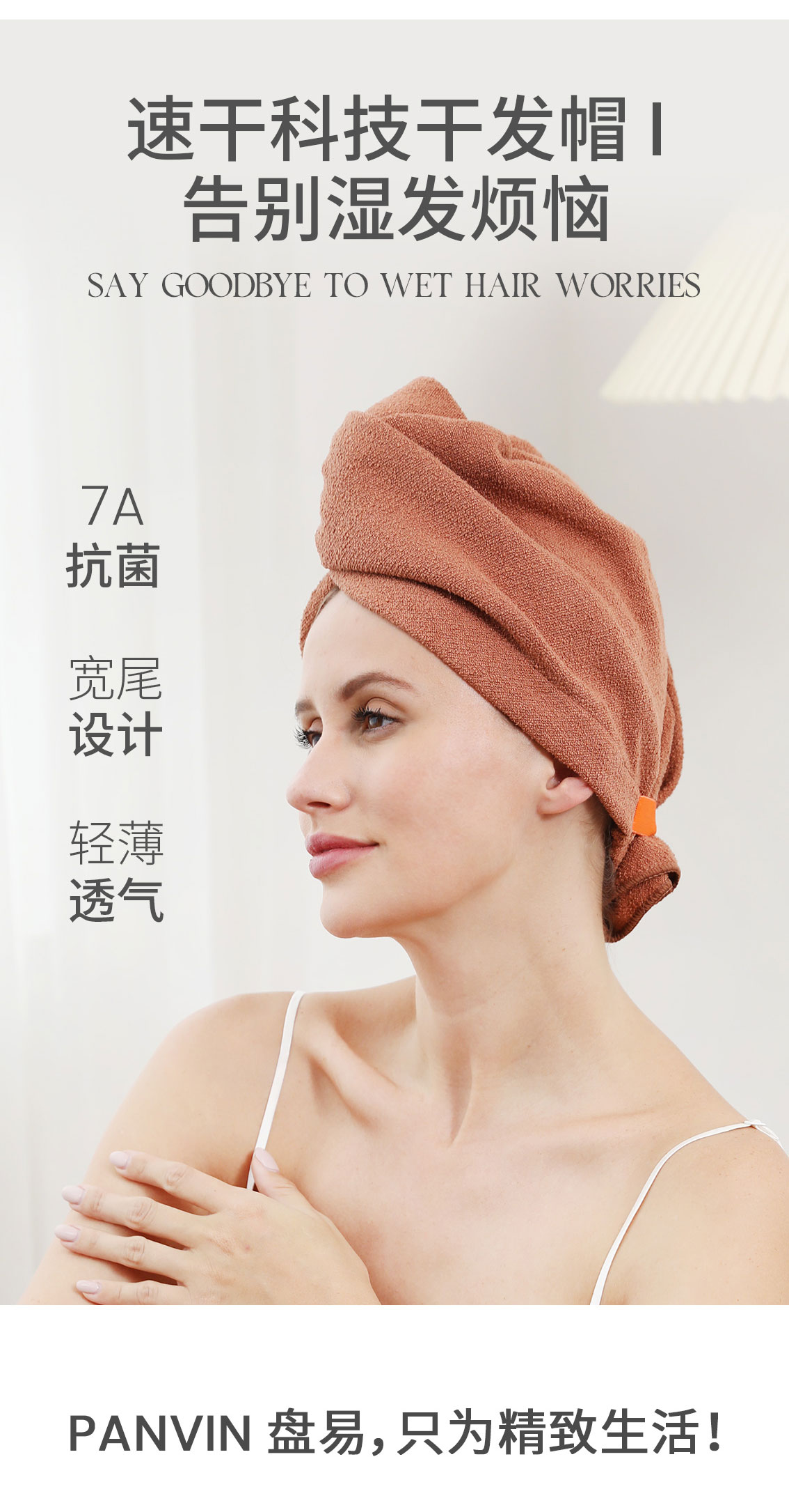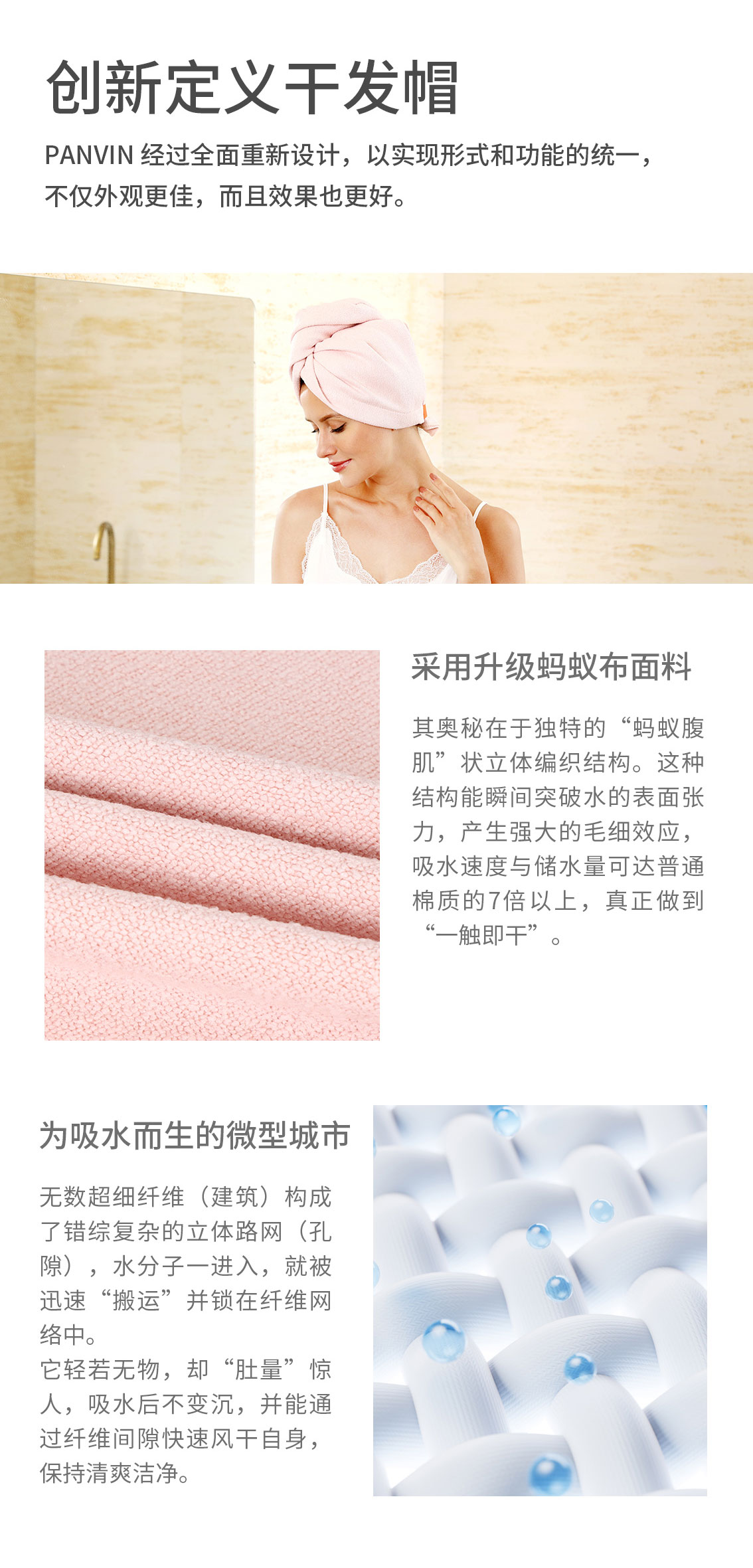 PANVIN速干科技干发帽,冬天用5分钟速干,夏天用透气不闷热,无需热吹风