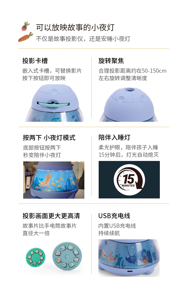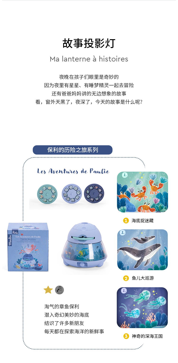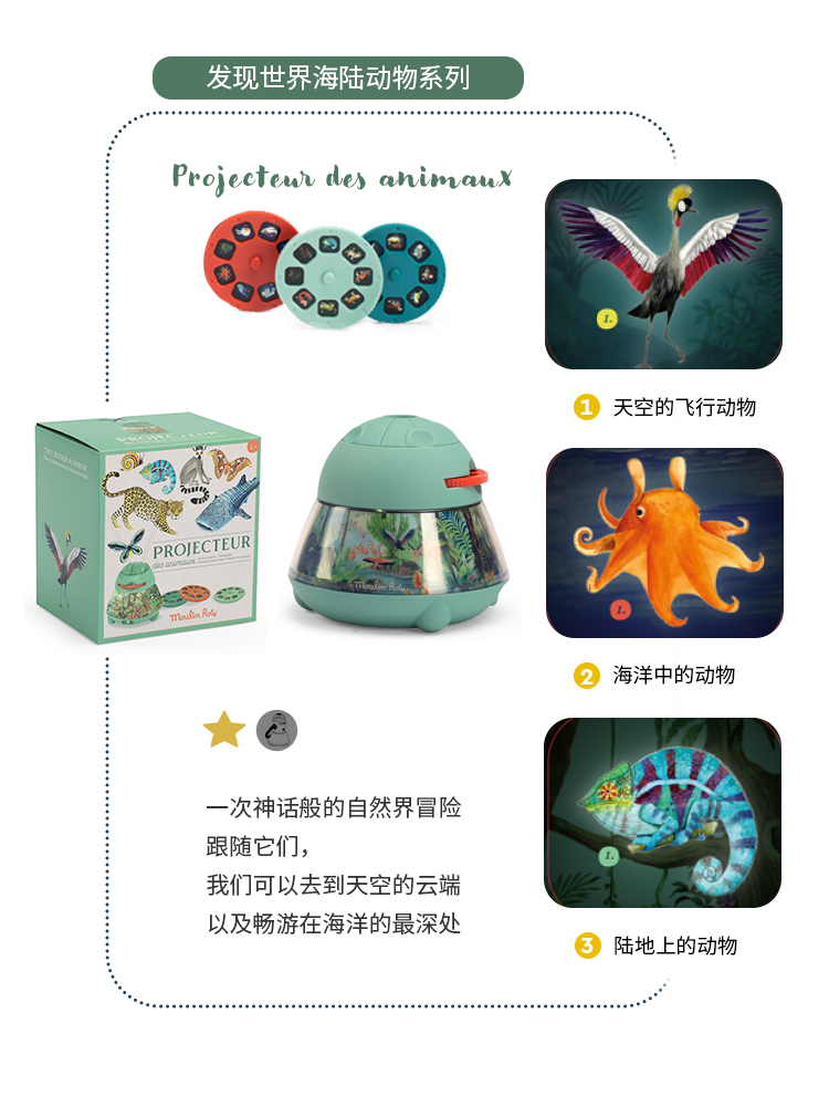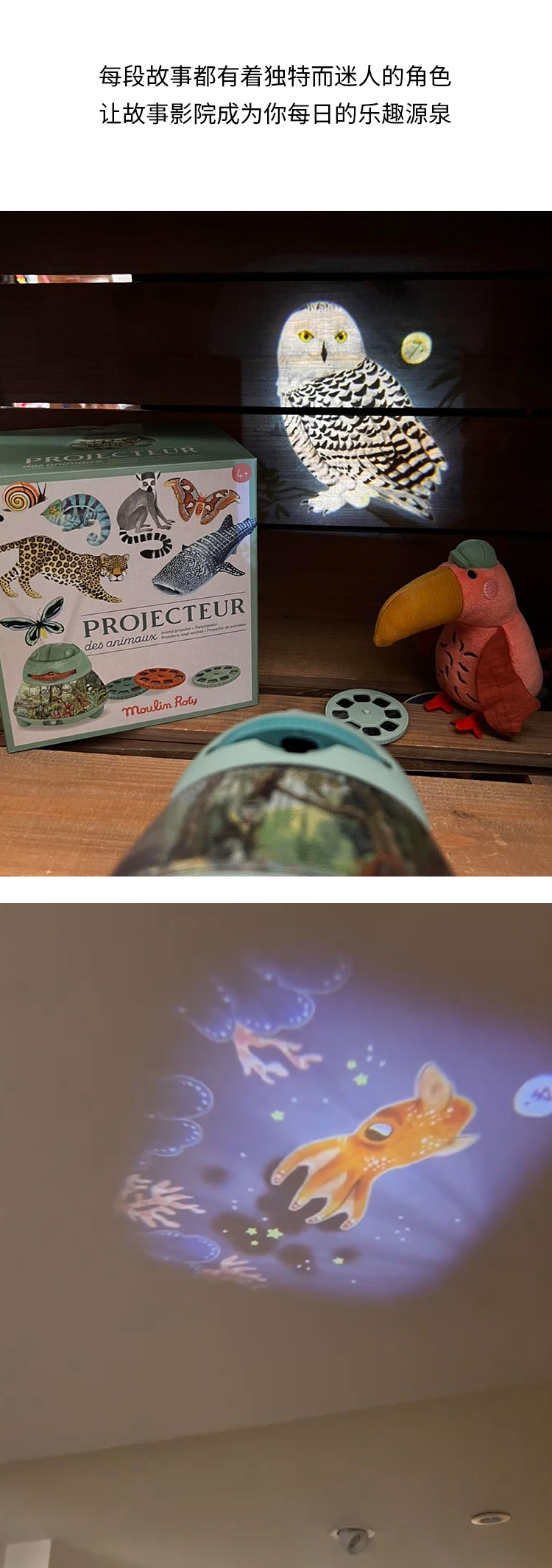 Moulin Roty 寰宇动物故事投影夜灯 适合4岁+ 含3枚幻灯片 大型投射 视觉震撼 寰宇动物系列 法国品牌-719365