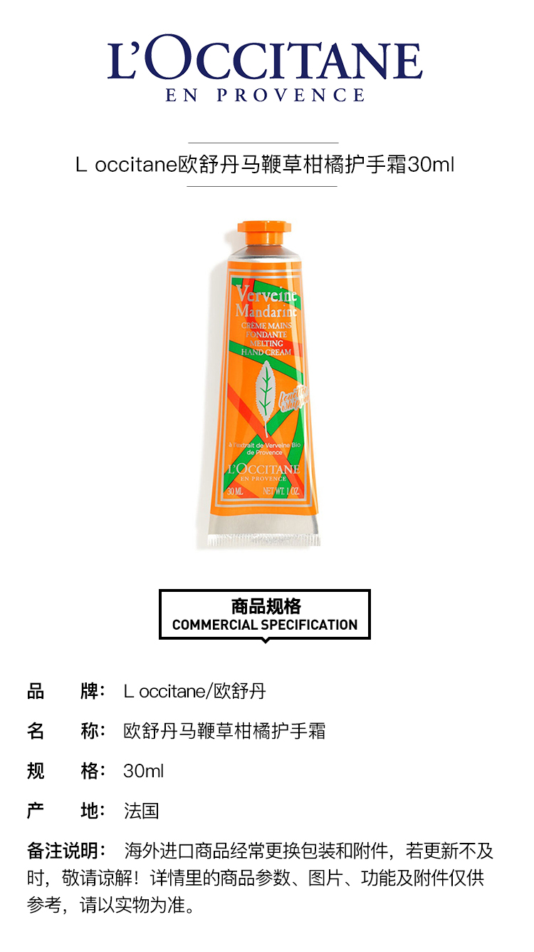 L occitane欧舒丹马鞭草柑橘护手霜30ml 2只装