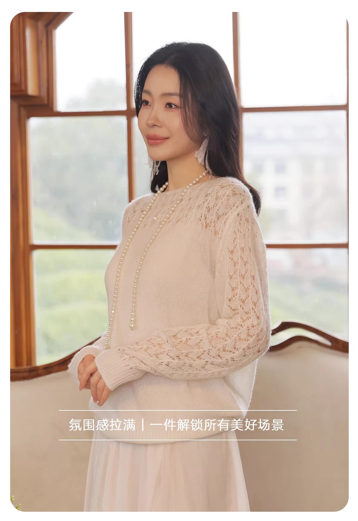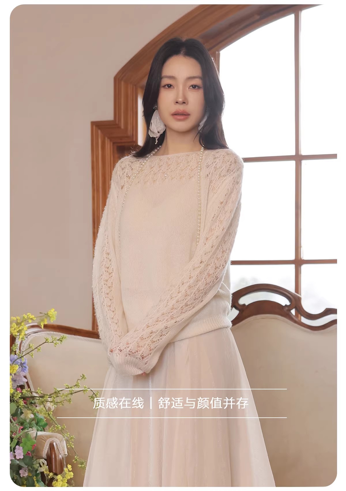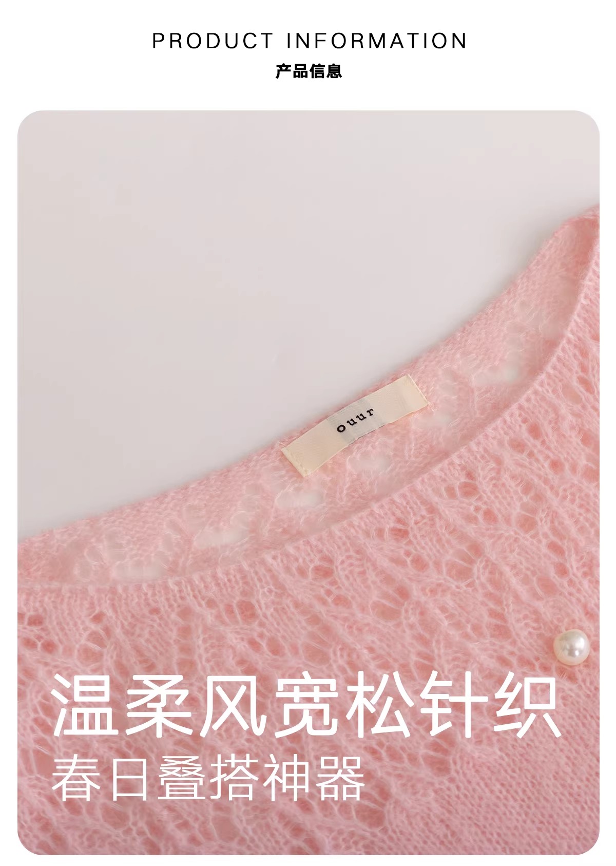 【门店同款】ENJOY春季“柔光芳序”一字领镂空针织上衣 169261661