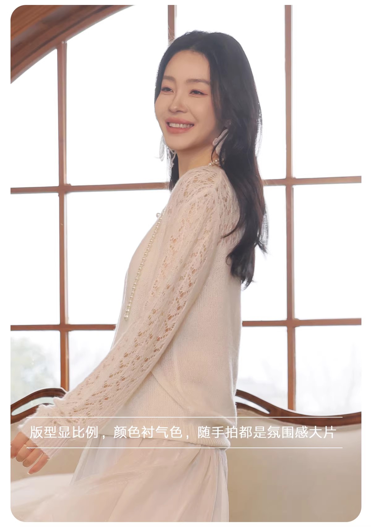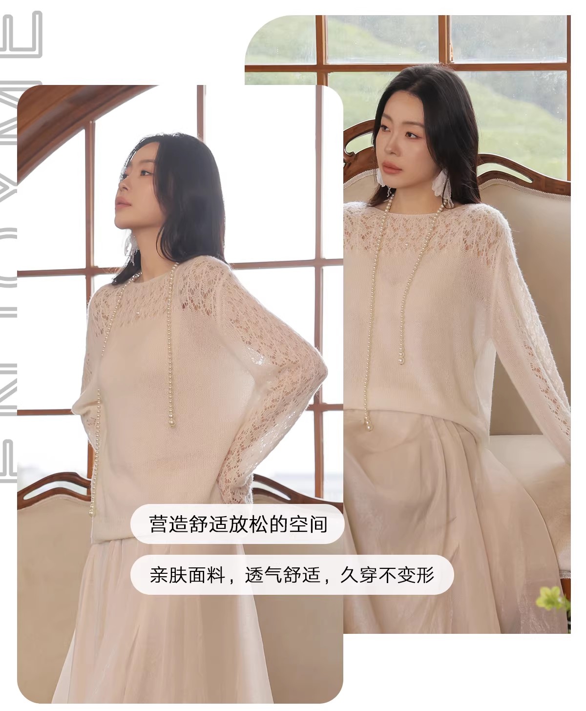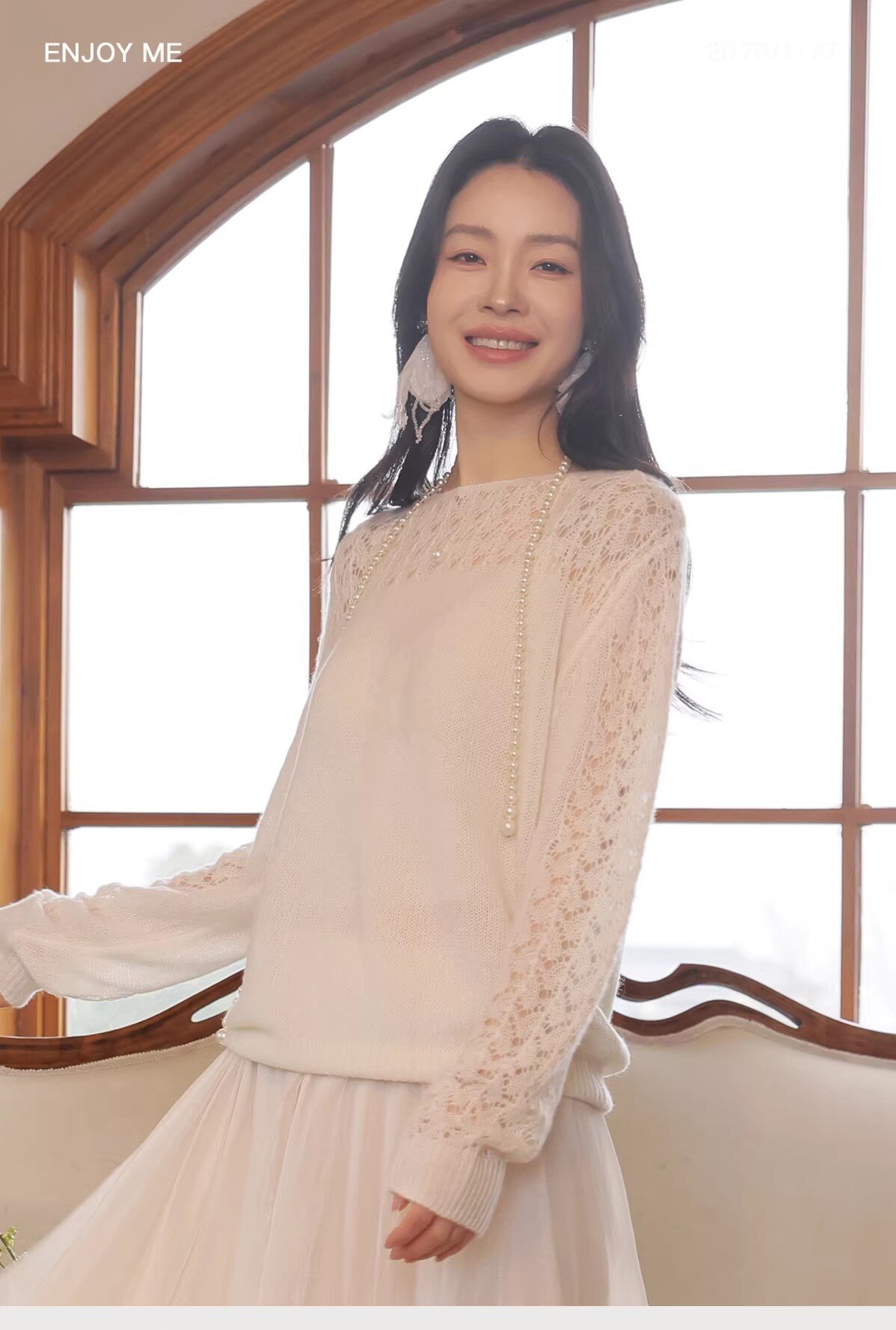 【门店同款】ENJOY春季“柔光芳序”一字领镂空针织上衣 169261661