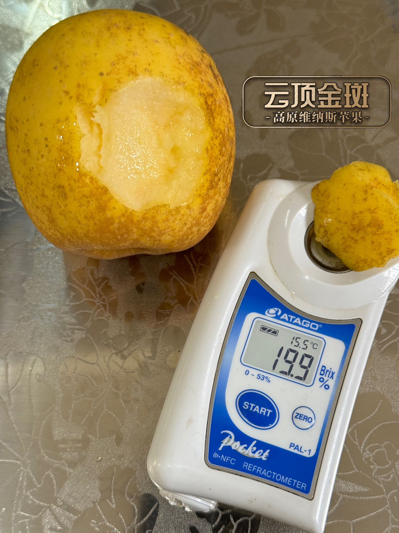 黄金维纳斯苹果上的星星点点,其实含糖量更高,味道更好,口感更佳;真正会吃的朋友,会专门特意挑选外皮果锈明显的黄金维纳斯来享用~