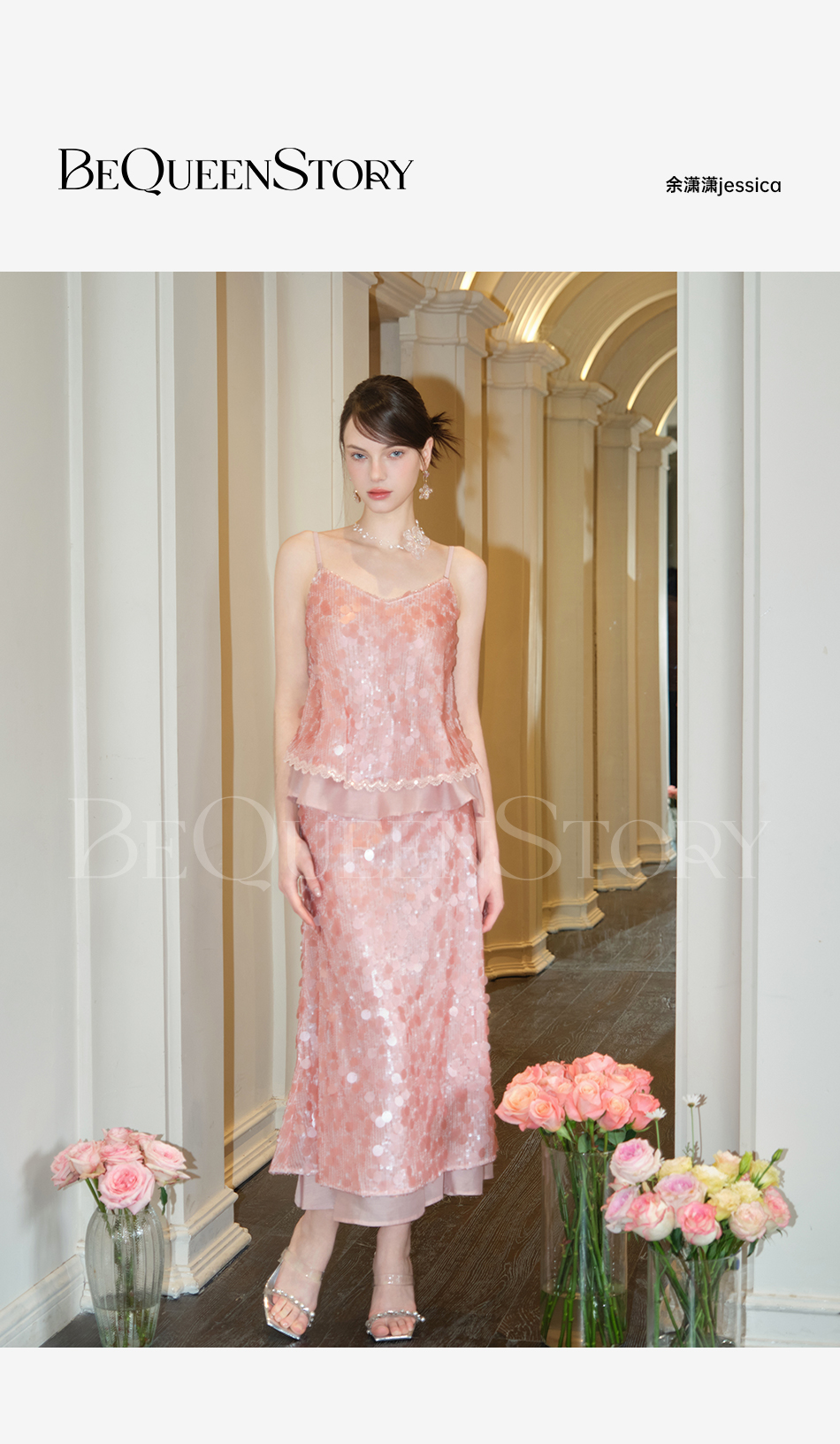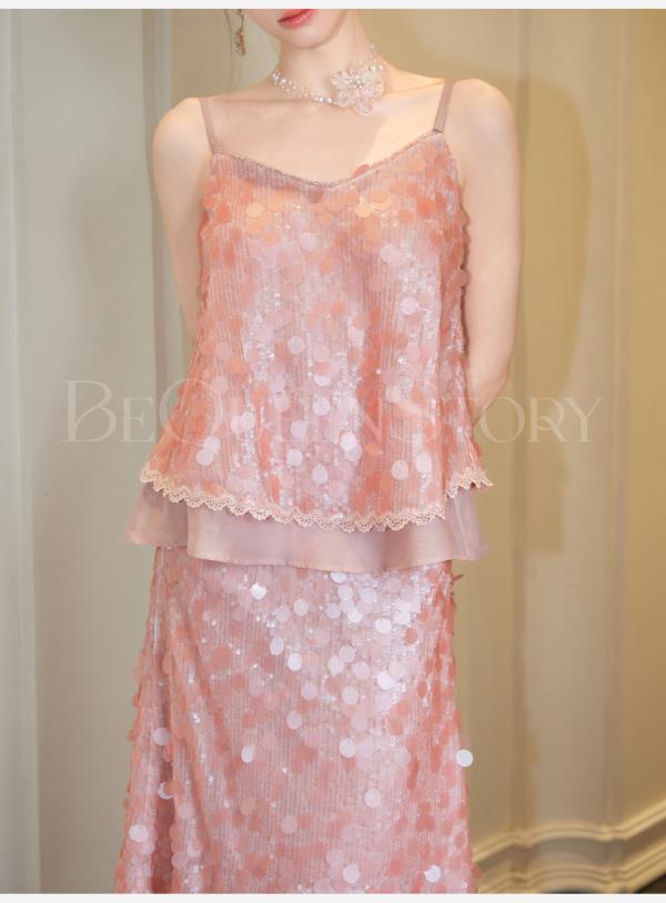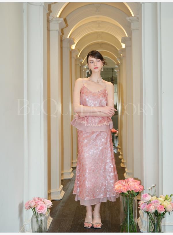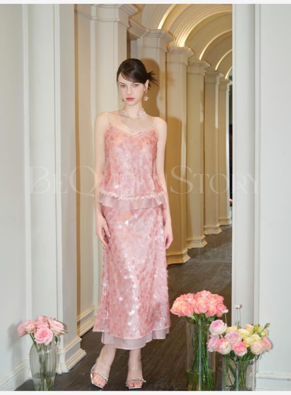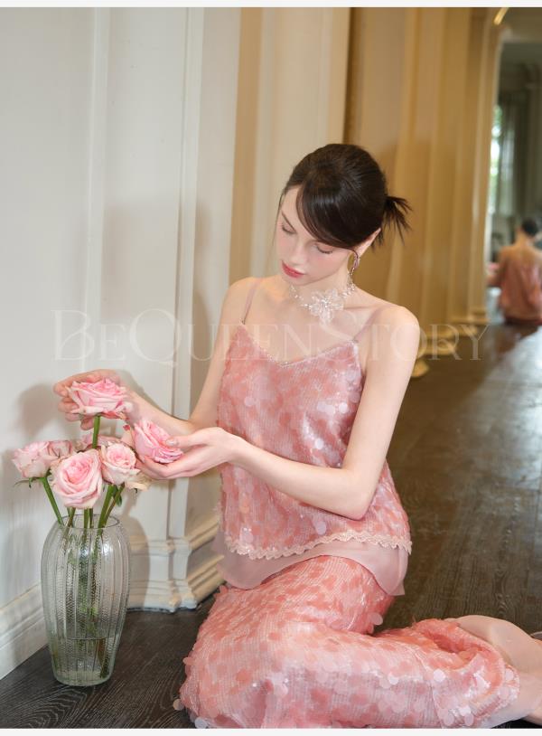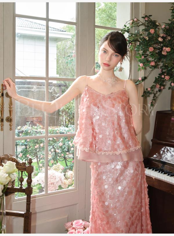 余潇潇【星露千金】2025春装新款时尚气质亮片设计上衣&裙子套装女