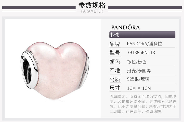 PANDORA/潘多拉 粉色可爱心形串珠 791886EN113