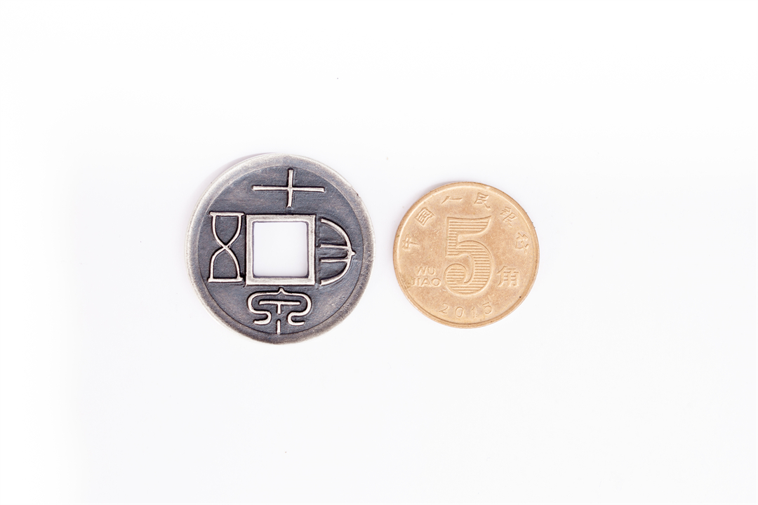 尺寸:钱币直径约26.5毫米,厚约1.8毫米,钱币孔径约7.2毫米,重约5克(手工作品有少许误差)。
