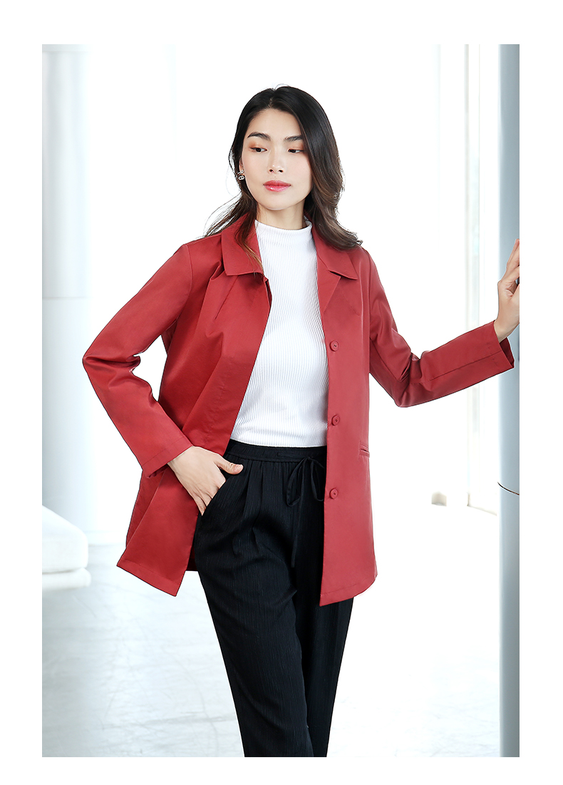佐尔美商场NEW同款春季薄纯色简约时尚通勤外套单排扣风衣E11FZ06