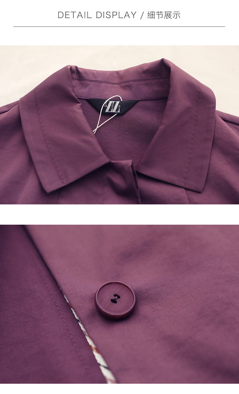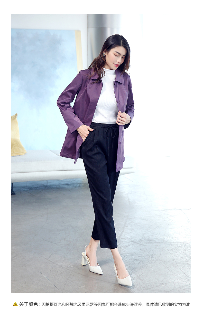 佐尔美春秋季女装纯色印花修身显瘦七分袖风衣外套E71FZ02
