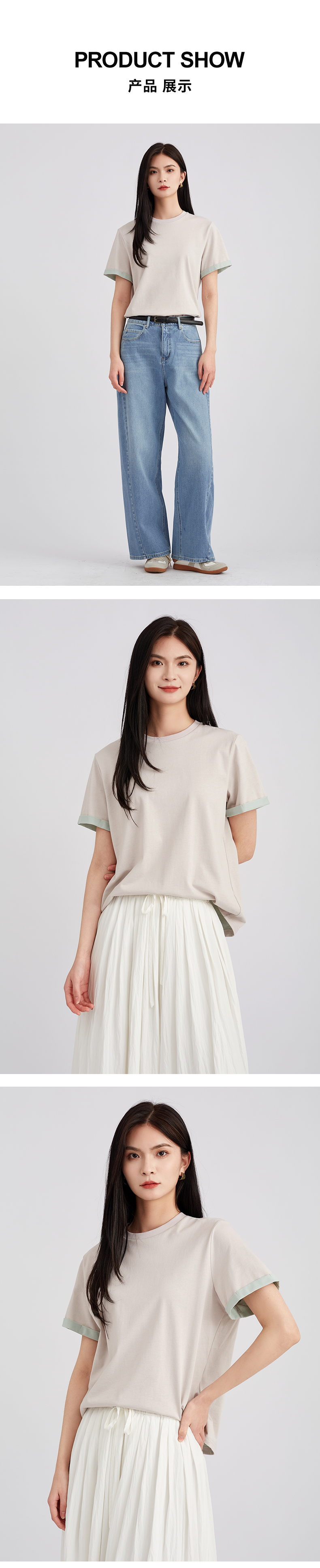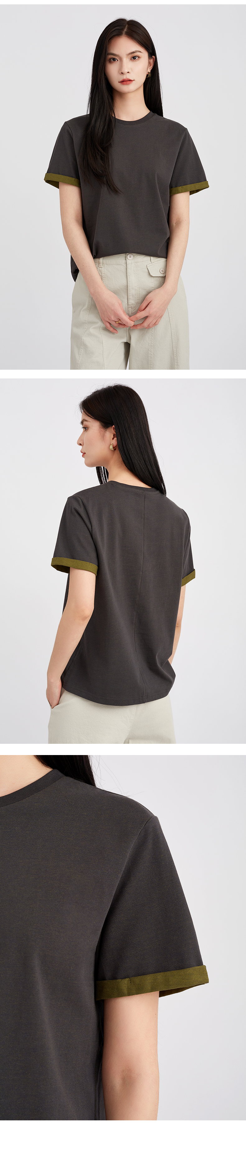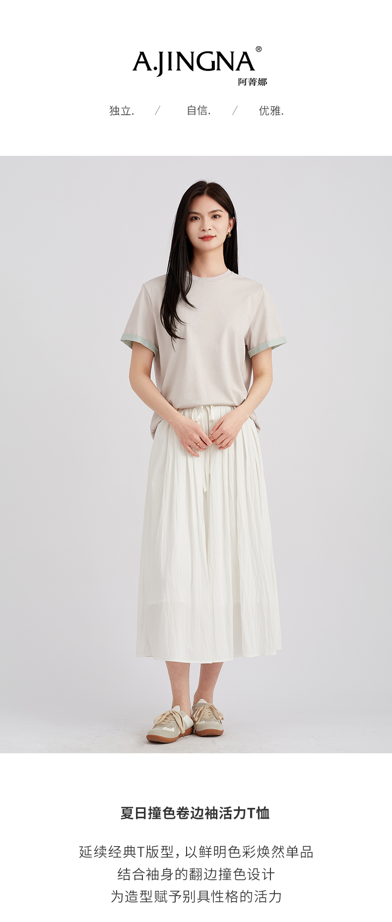 【延续经典】阿菁娜夏日撞色卷边袖活力T恤F30C302032