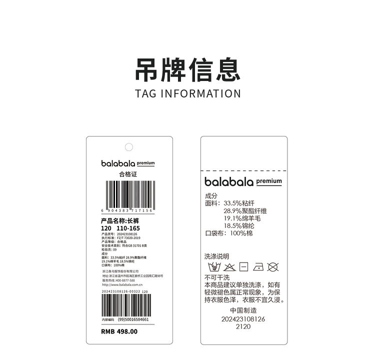 【premium】巴拉巴拉高端线冬摩登庄园系列男可水洗羊毛长裤