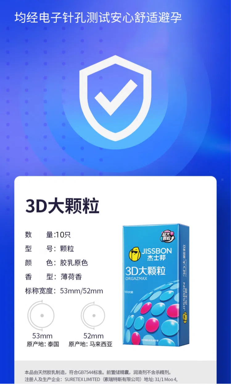 杰士邦避孕套3D大颗粒10只凸点螺纹安全套套女性快潮成人计生情趣用品