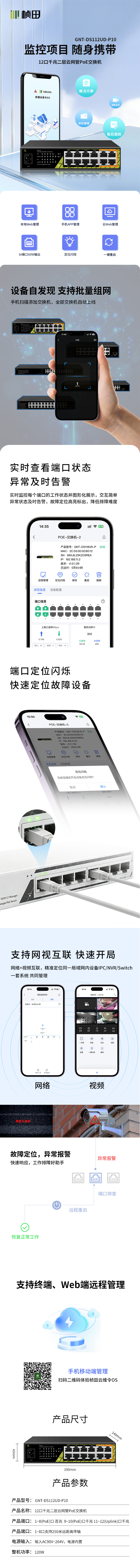 12口千兆二层云网管POE交换机GNT-DS112UD-P10