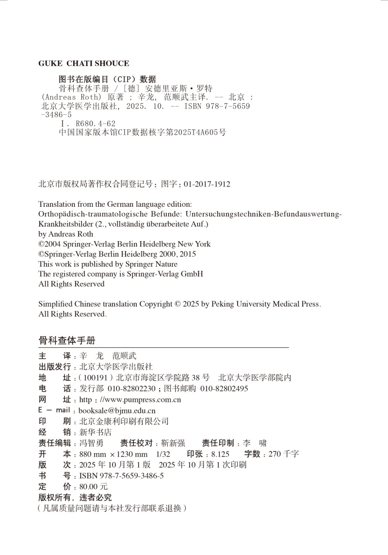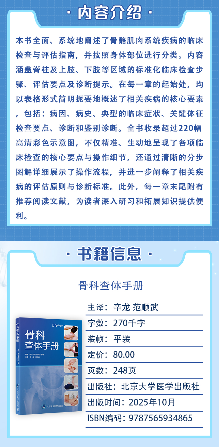 骨科查体手册 辛龙 范顺武 译 通过200余幅高清图示和分步操作图解 系统介绍了脊柱 四肢及关节的标准查体方法 北京大学医学出版社