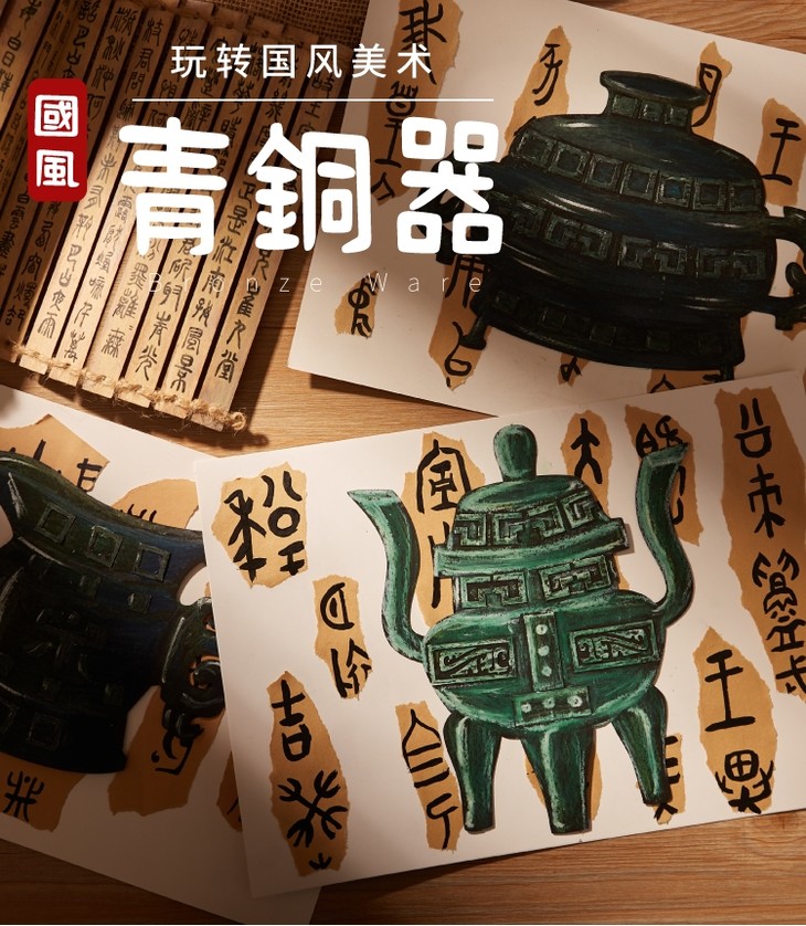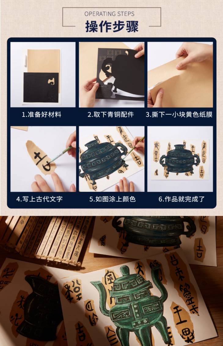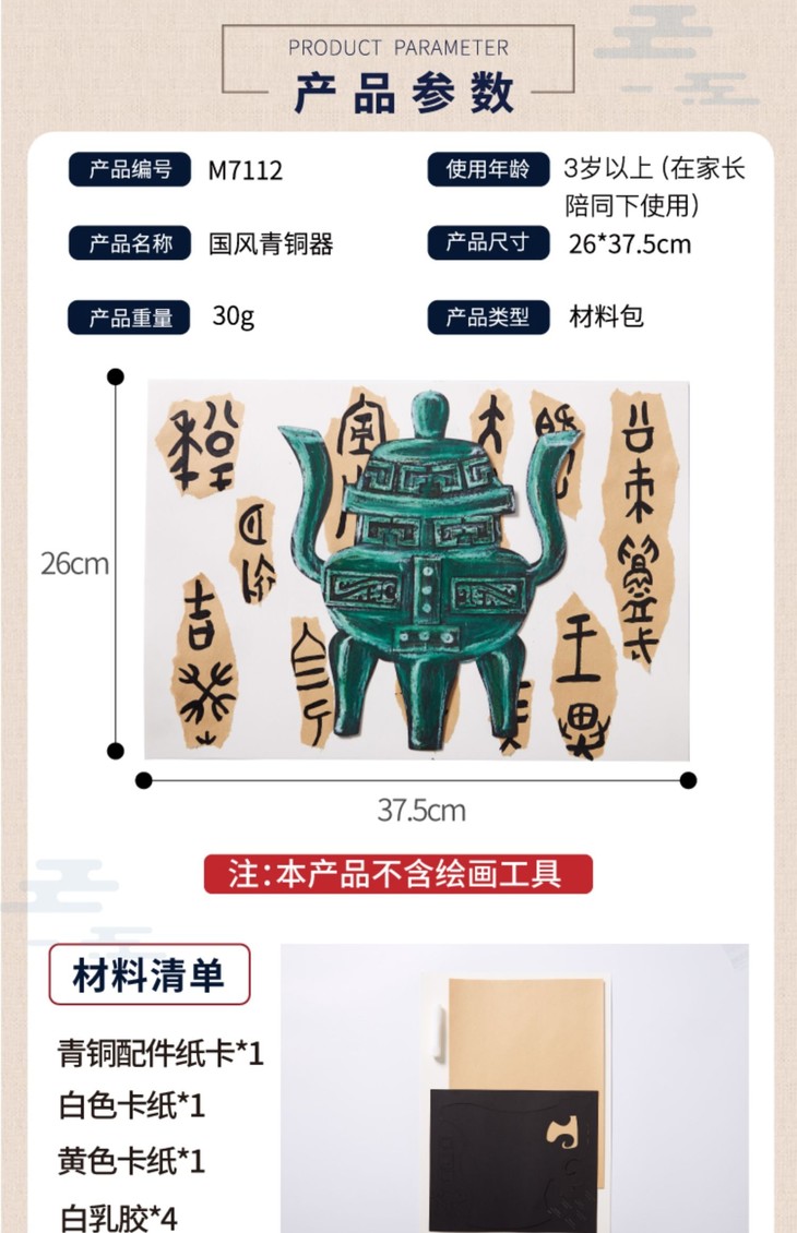 美可 中国风新款青铜器幼儿园儿童手工diy制作材料包创意美术绘画