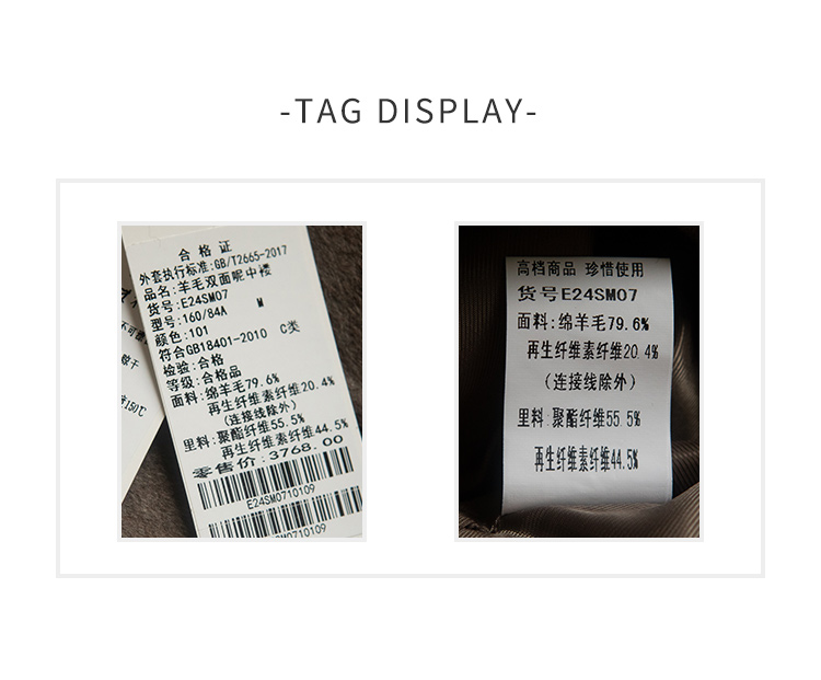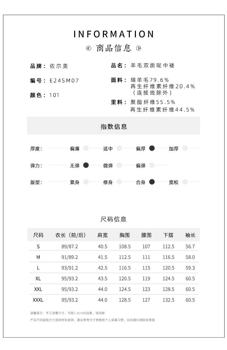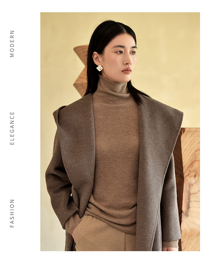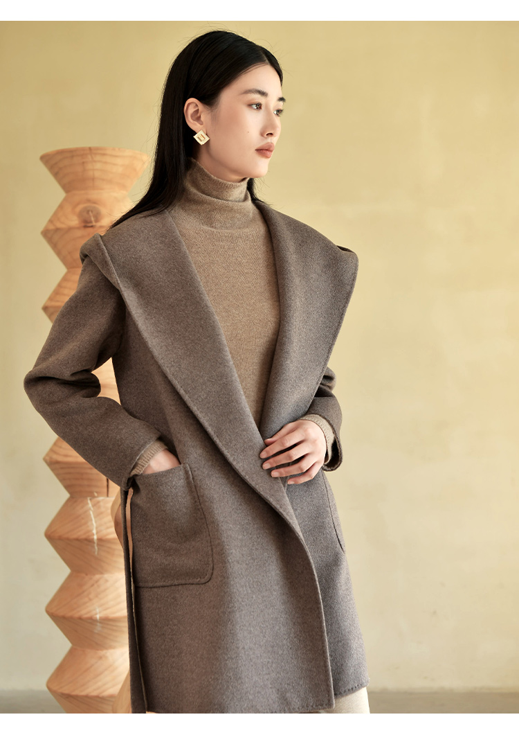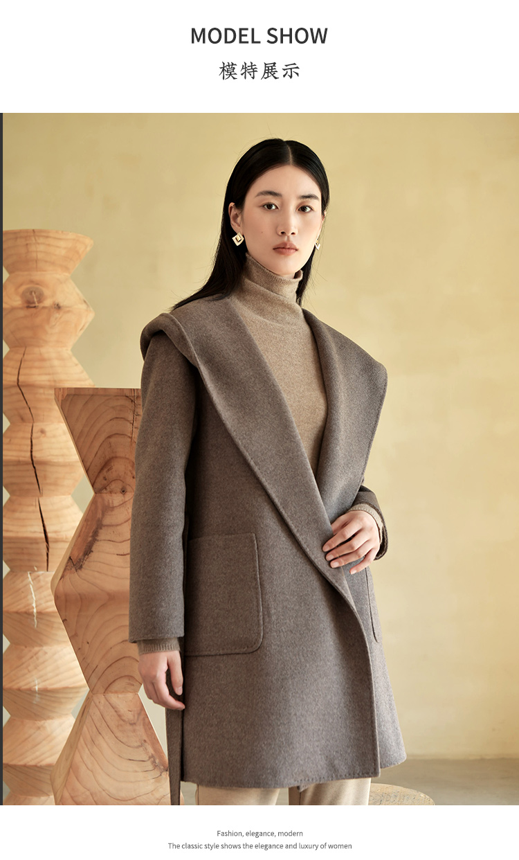 佐尔美冬季新款 气质时尚羊毛双面呢中褛外套女E24SM07