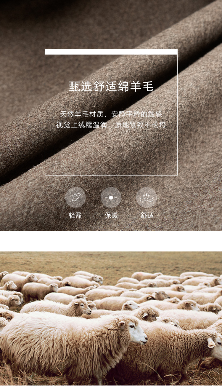 佐尔美冬季女装纯色百搭针织羊毛呢子大衣外套双面呢E64SR03