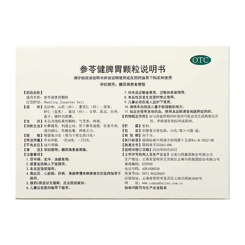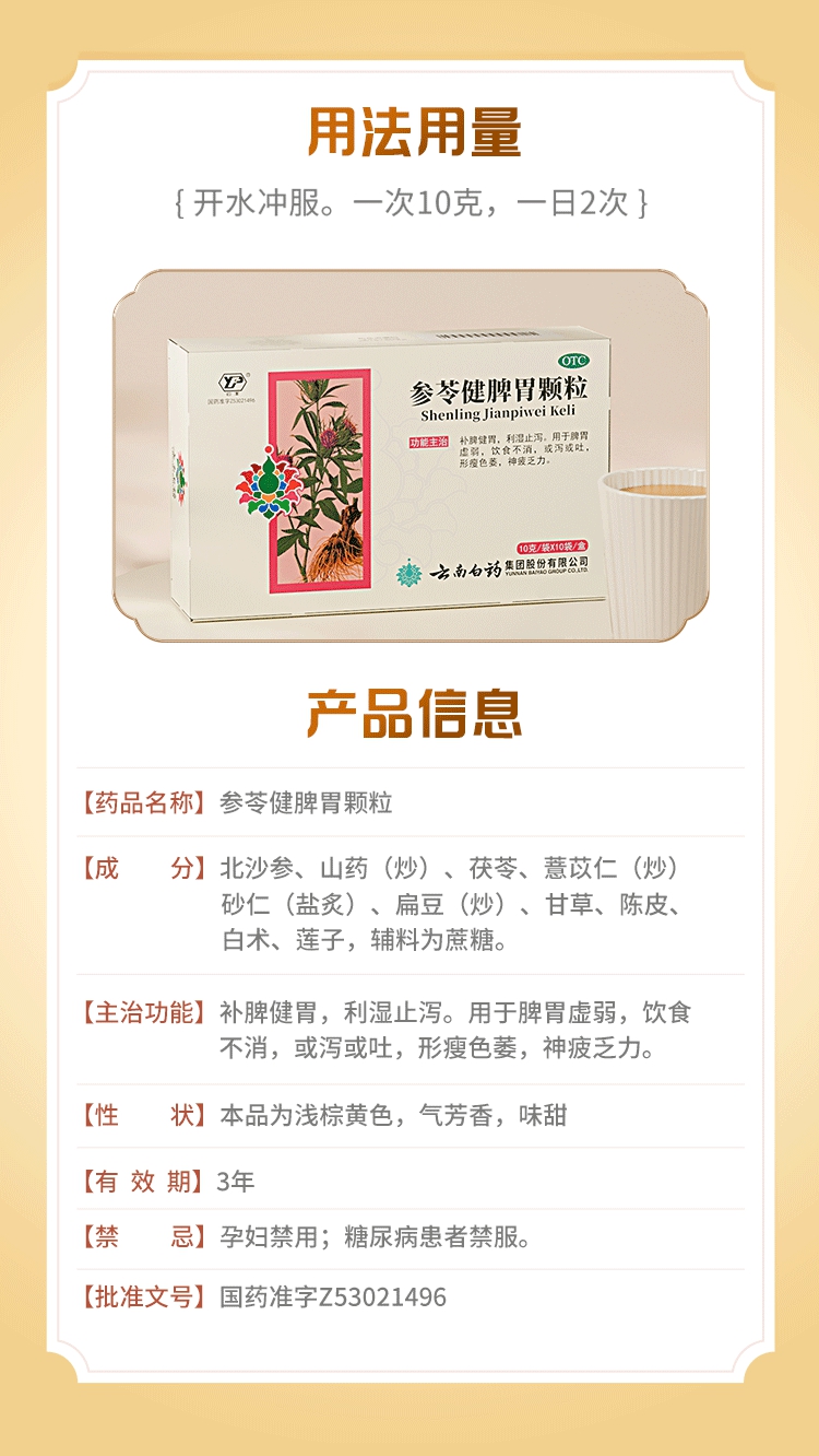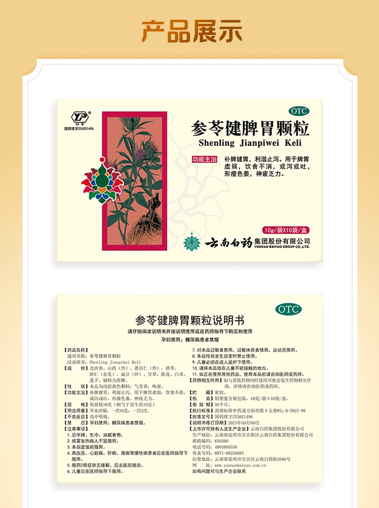 【官方正品】云南白药云丰参苓健脾胃颗粒颗粒10g/袋*10袋/盒 补脾健胃利湿止泻