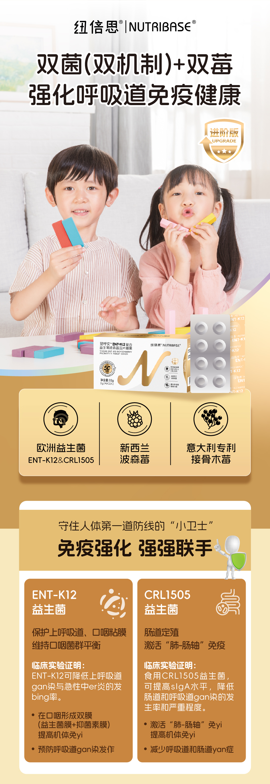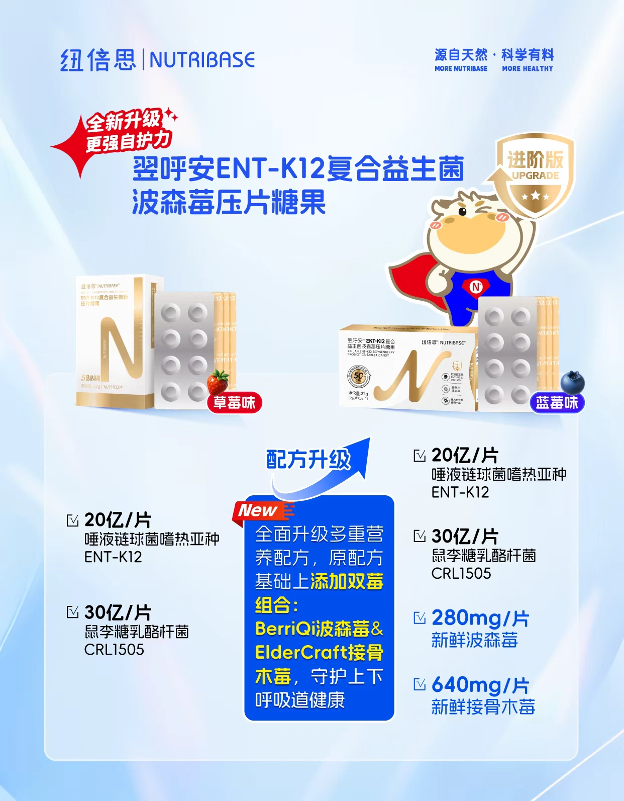 ¹新升级【片剂耳鼻喉益生菌】 ENT-K12复合益生菌含片 升级添加波森莓 接骨木莓 对抗口咽微生物 致可多平替 32片/盒CF01-CRMM-NBS