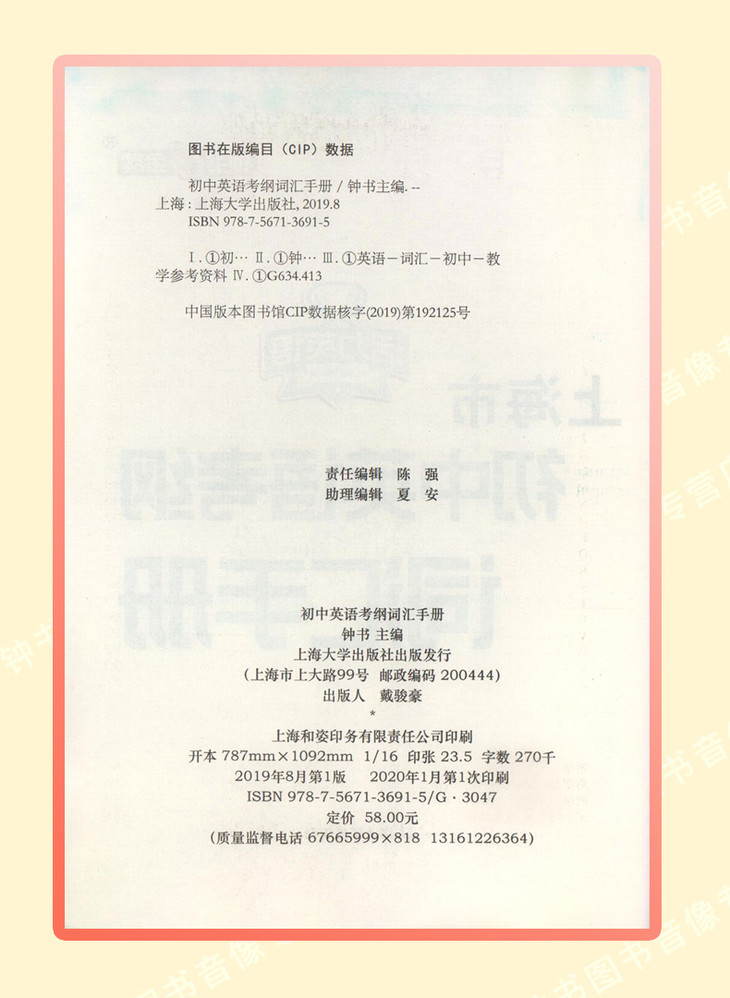 钟书上海市初中英语考纲词汇手册活力英语上海中考英语词汇学习初中初一初二初三中考大纲上海中考英语词汇辅导用法手册