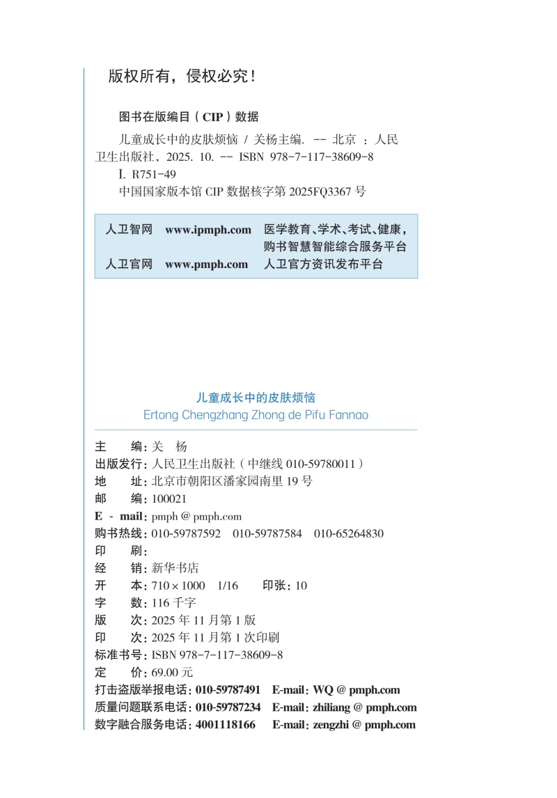 儿童成长中的皮肤烦恼 关杨 主编 0-18岁儿童、青少年最常见的近20种皮肤问题 实用的护理指导和科学的治疗建议 人民卫生出版社