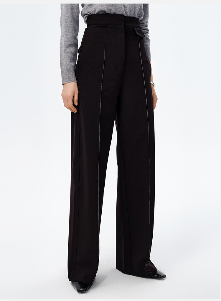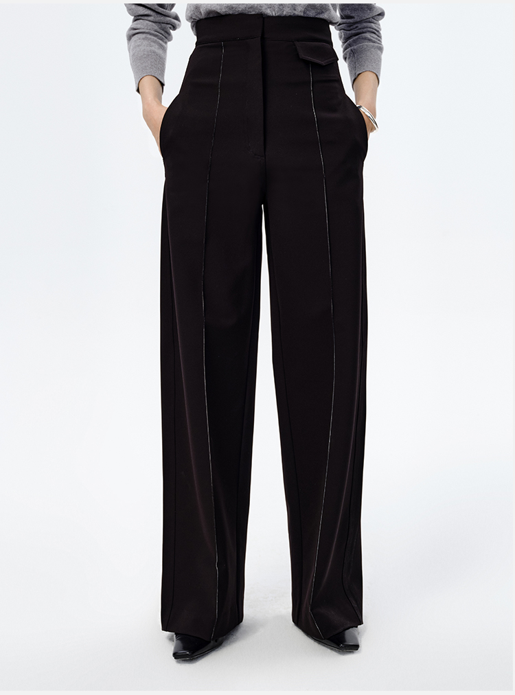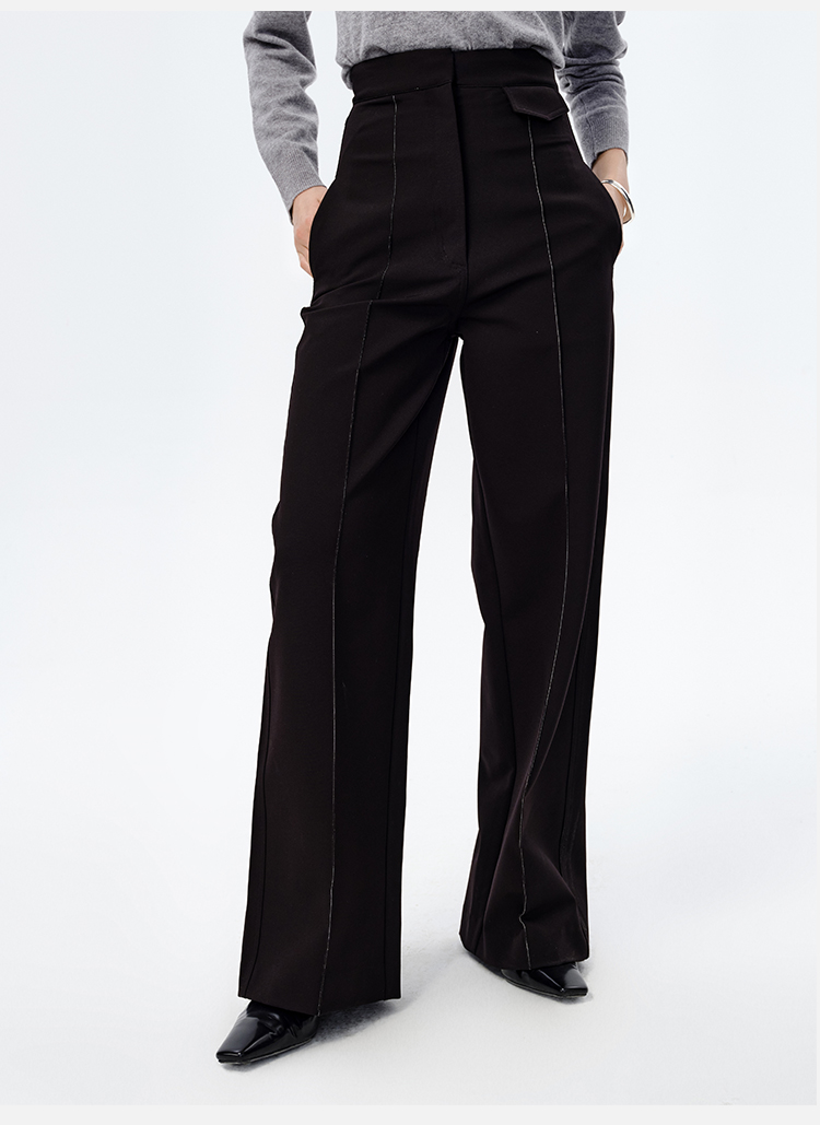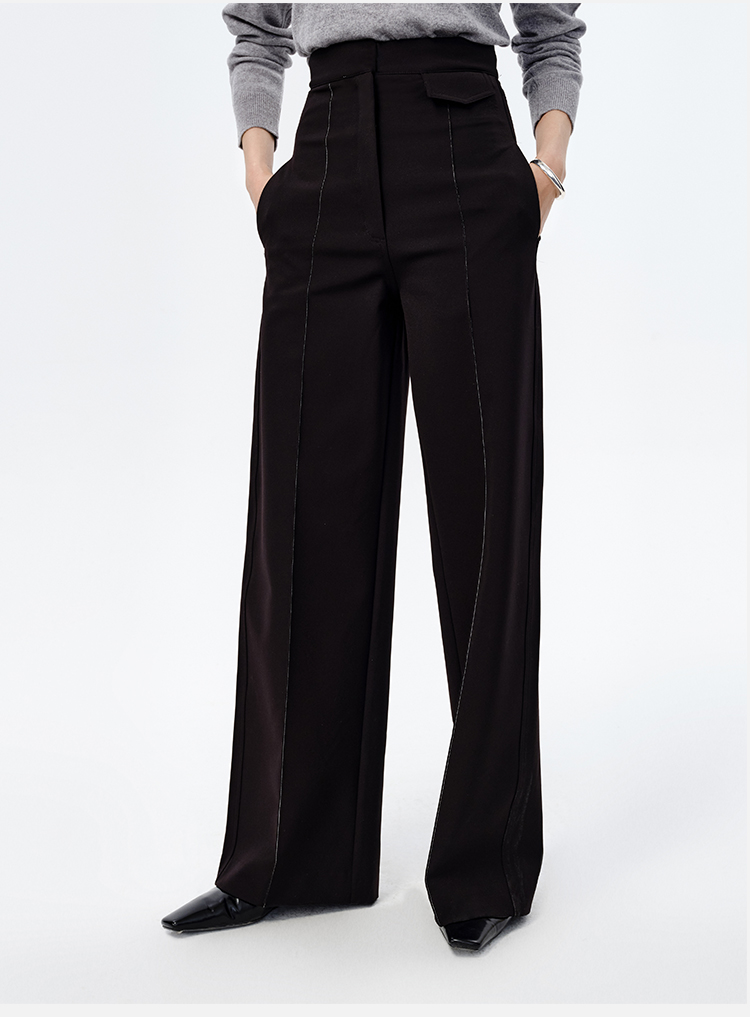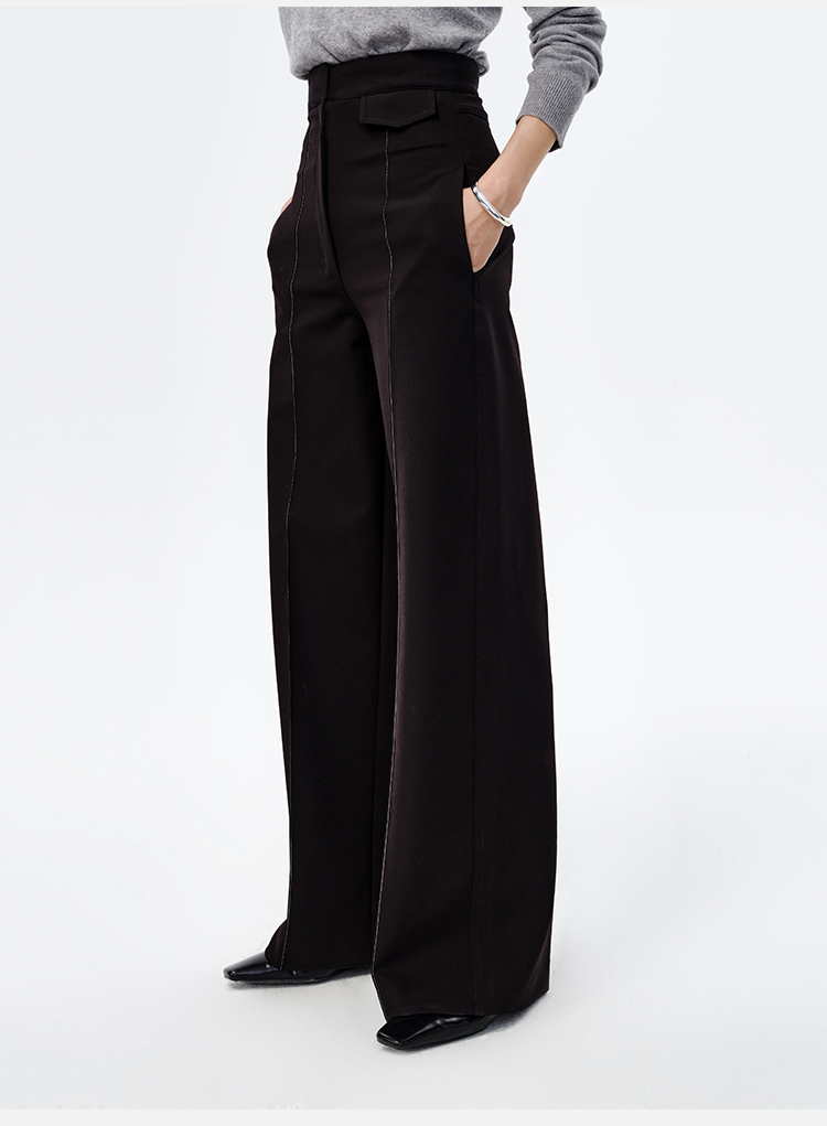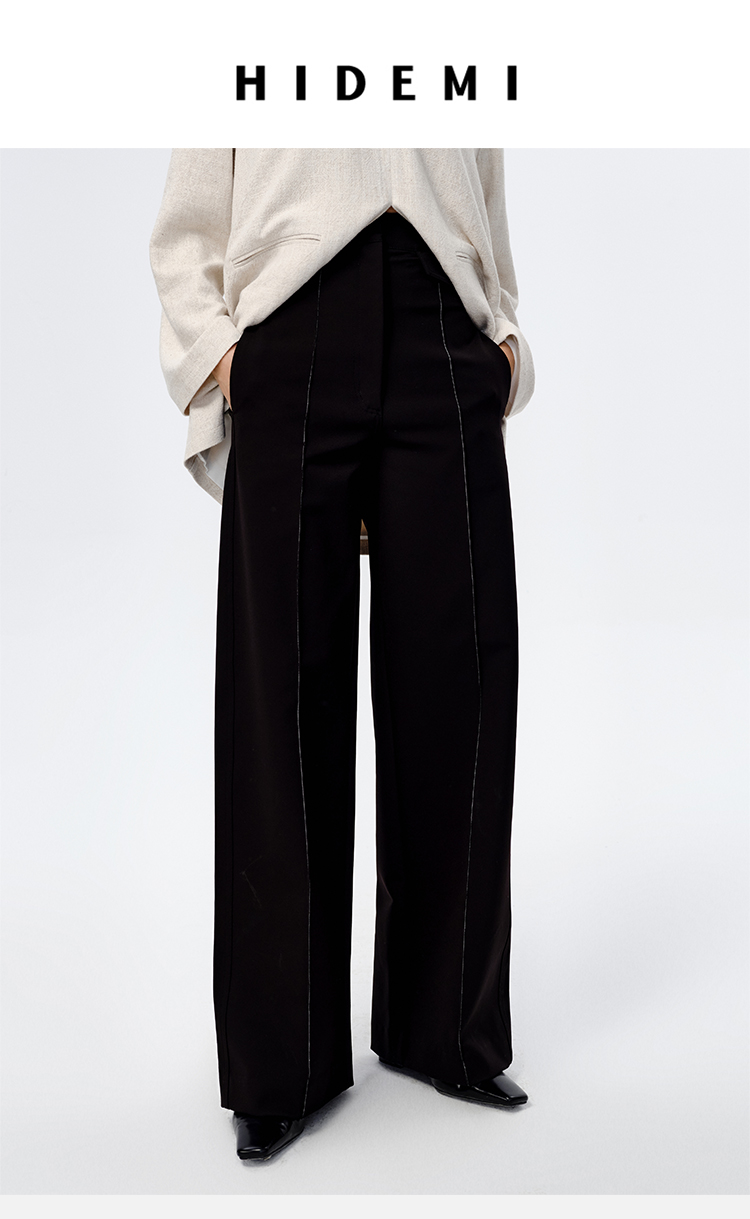 HIDEMI 显瘦高腰明线设计感口袋式阔腿西裤