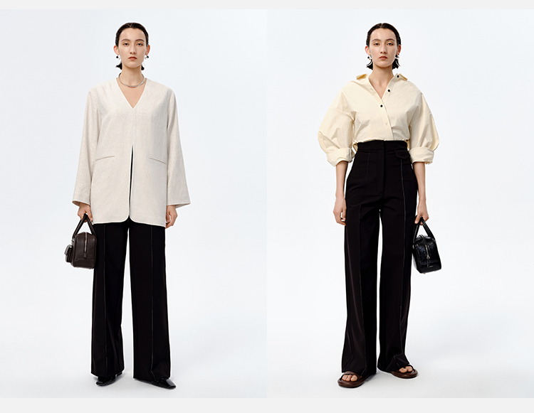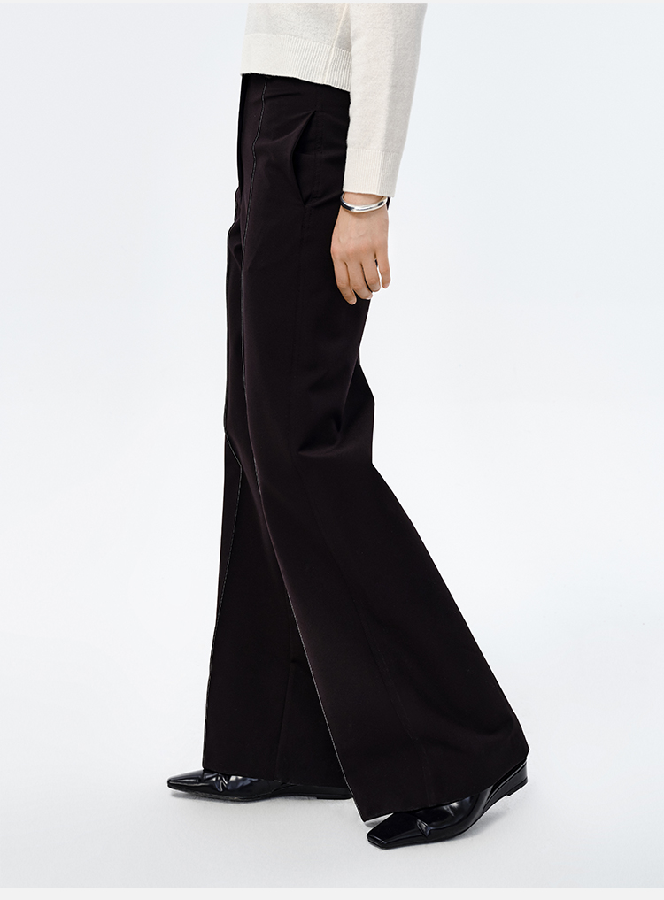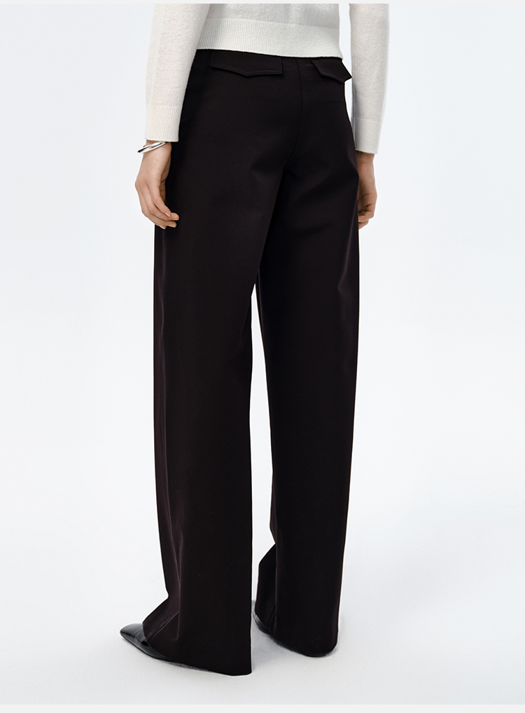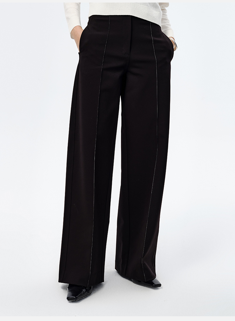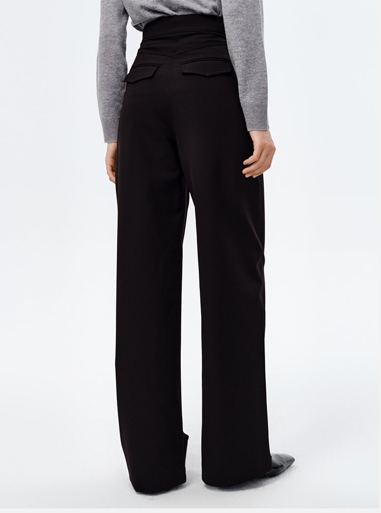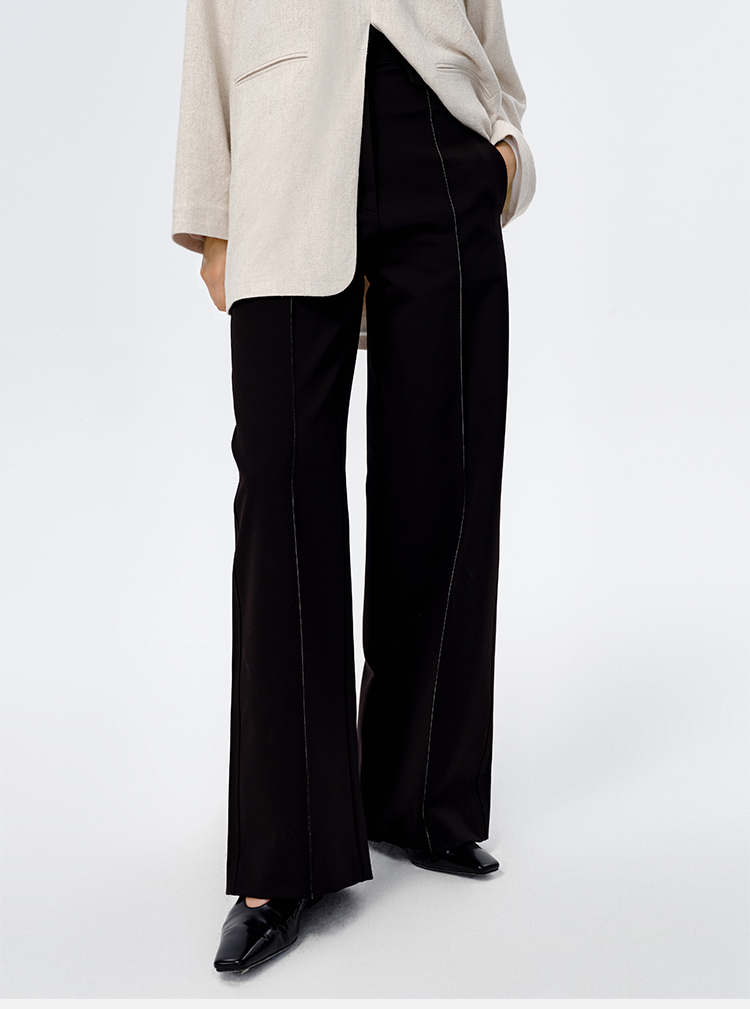 HIDEMI 显瘦高腰明线设计感口袋式阔腿西裤